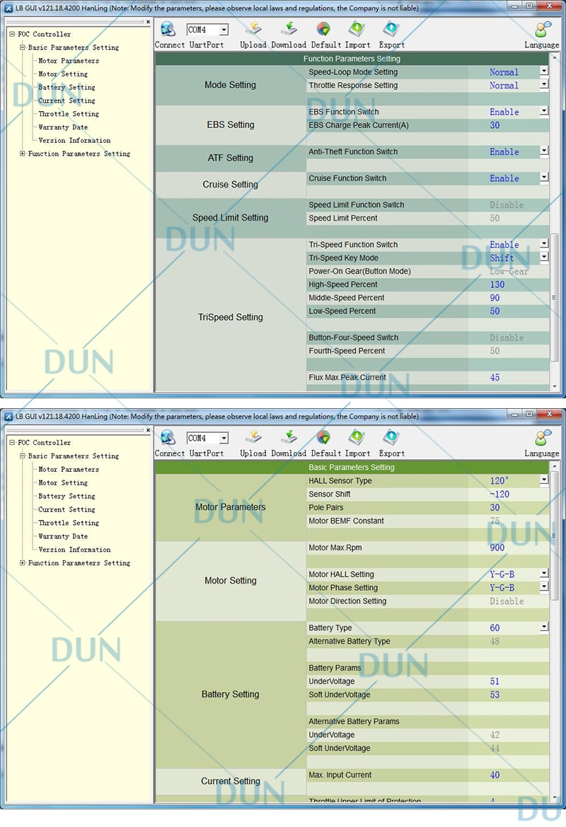 Einen Lingbo zu parametrieren sollte kein Hexenwerk sein. Polpaarzahlen gibt es wohl sehr viele: 26 oder 28 oder 30. Ich probierte einen Hall Shift - 60° oder auch -120° wie im Beispiel oben. Bosch hat eine Partnerschaft mit Lingbo. Die "Bosch" Controller kann man nachträglich nicht parametrieren.