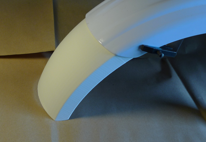 edit: Sieht doch gut aus, aber ... Wäre es nicht denkbar gewesen, den Spritzschutz so zu designen, dass er die ersten 2 cm innen überlappt und dann außen die Kontur des Originals weiter führt? jetzt sieht man doch wohl die Kante deutlich. Also wennschon ...
