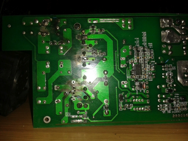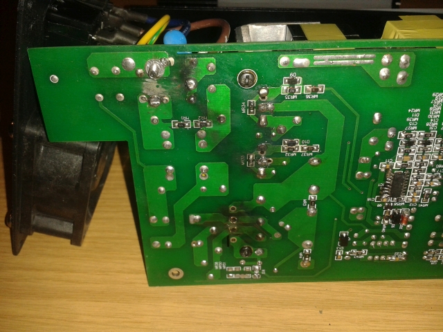 Tja, zuviel Hitze - das sieht von den Lötstellen her aus, als ob sich da der Dreibeiner, der am Kühlkörper hängt, ausgelötet hat. Das darf eigentlich nicht passieren, Grund ist entweder schlampige Verarbeitung, oder noch schlimmer, Dimensionerungsfehler /z.B. durch Hochdrehen der Ladespannung auf einen höheren Wert.