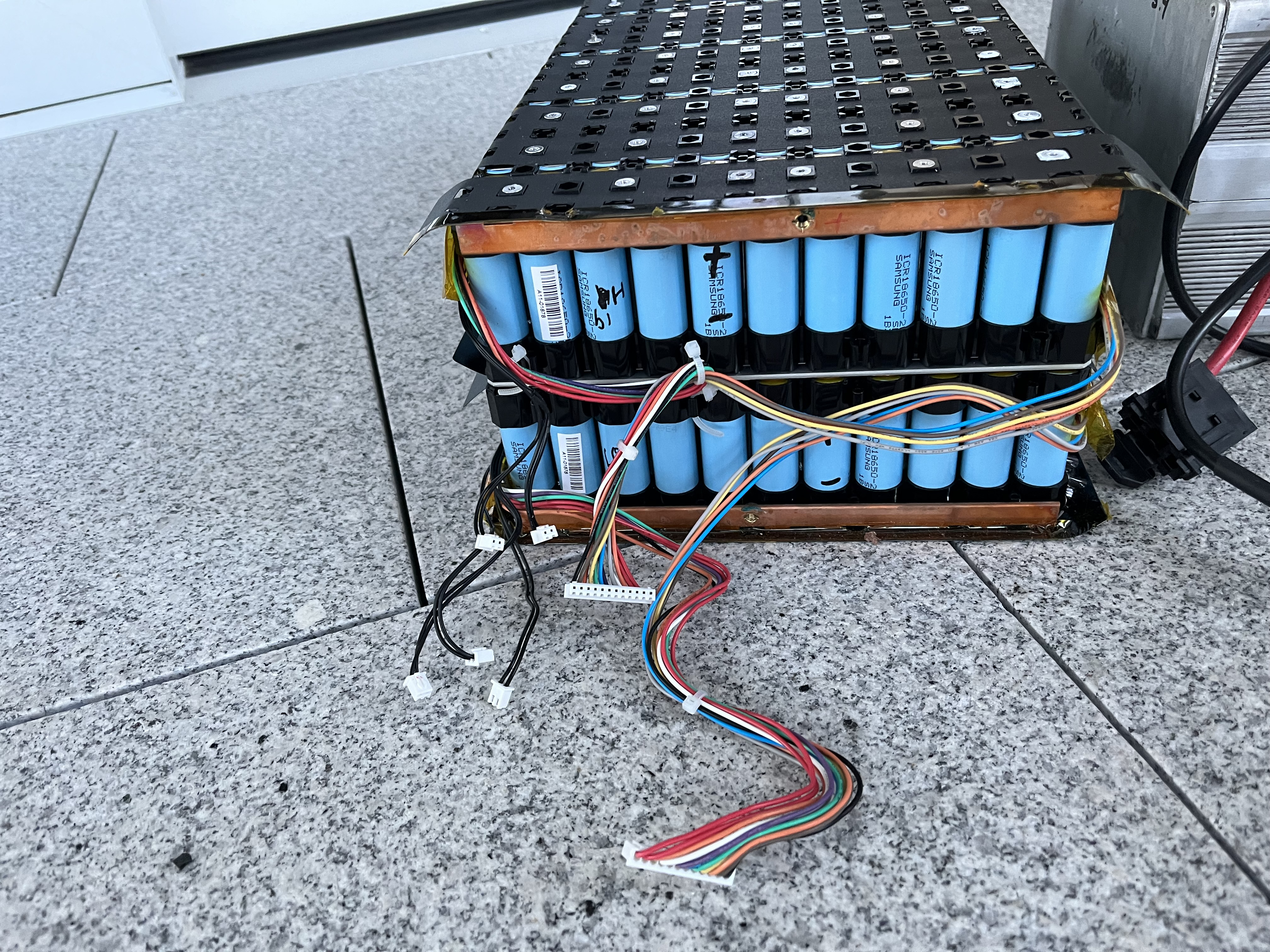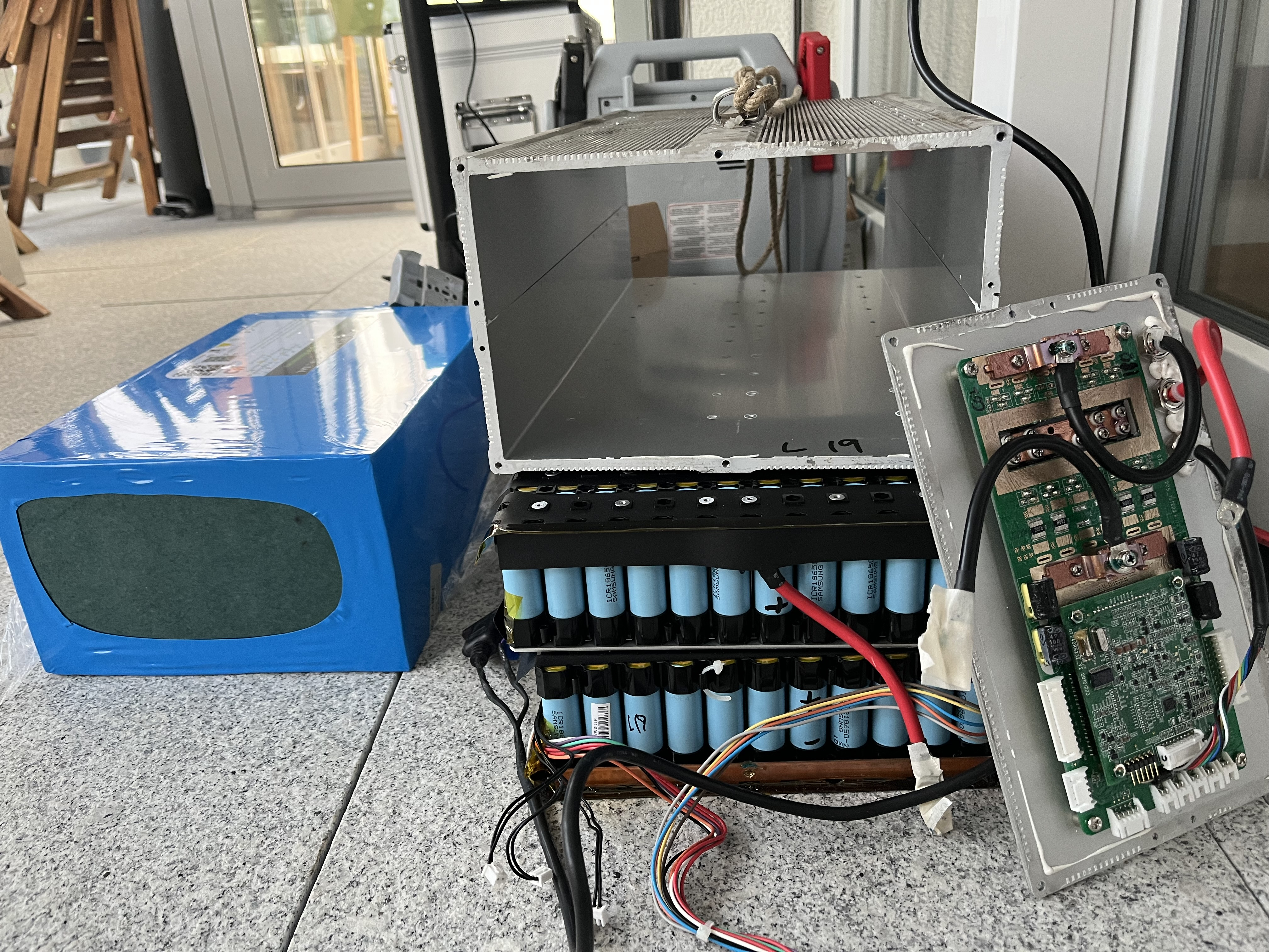 Kurzes Update Pack ist angekommen und verbaut. Auf den Bildern sieht man das alte Pack mit Bms. Am BMS war ein Kabel mit 3 Polen das in den Kabelstrang nach oben zum Display vermutlich(?)geführt wurde.