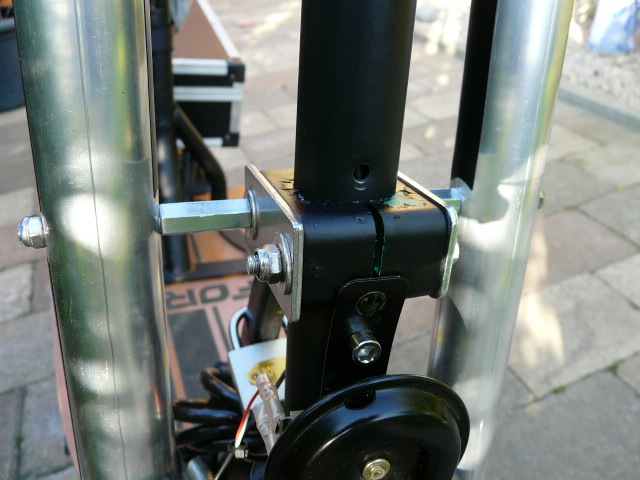 Hier noch ein paar Detailbilder zum Zusammenbau. Ist alles ziemlich robust. Die Kappen oben muss ich noch abändern, sieht nicht ganz so aus wie ich mir das gedacht hatte, vernünftige Staubkappen müssen da noch hin, sind derzeit noch schwarz lackierte Zaunkappen aus dem Gartencenter...