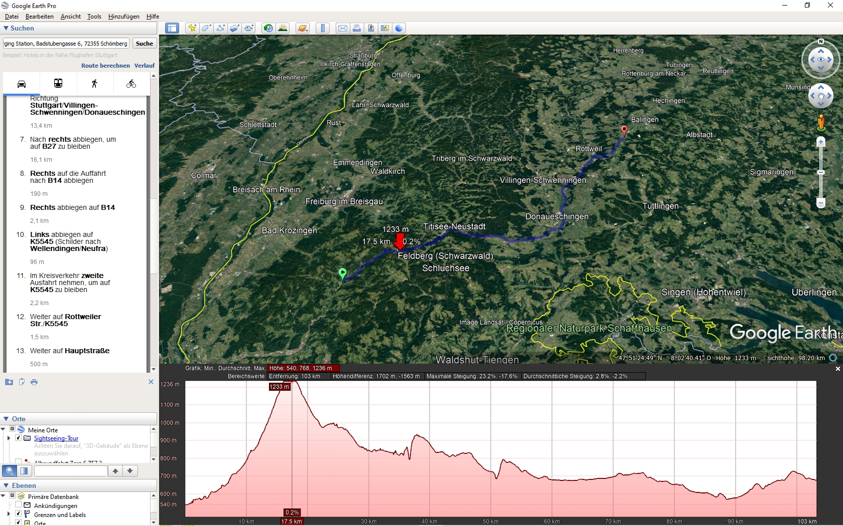 104 km waren also selbst mit dem Feldberg im Weg mit meiner ZF10.5 möglich