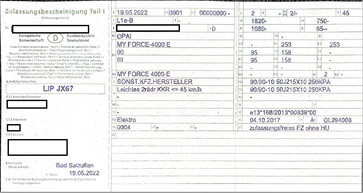 Anmeldung ging eigentlich ganz von selbst. Die Dame vom Straßenverkehrsamt hat das Feld "Nächste HU" frei gelassen und den Zusatz "Zulassungfreies FZ ohne HU" hinzugefügt.