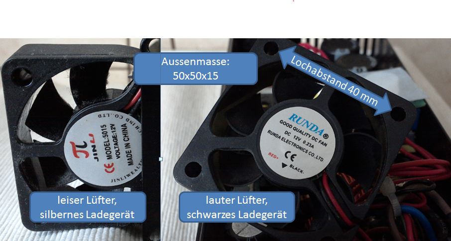 Gibt es Unterschiede zwischen den Ladegeräten? Falls ja, kann der Lüfter ausgetauscht werden? Weiss jemand einen leiseren Propeller? (Alfred, Du als Fachmann für alles strömende hast vielleicht einen Tip?)