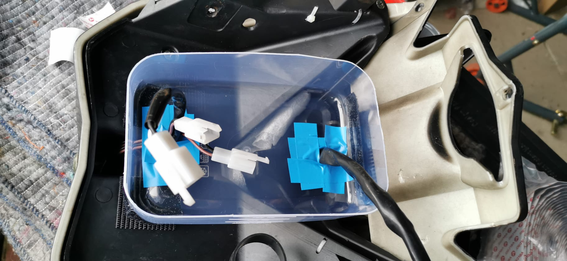 So kann dann vorne bspw. ein wasserdichtes Kameragehäuse fixiert werden, ohne dass man Angst haben muss, dass das Teil beim nächsten Schlagloch einen Abgang macht