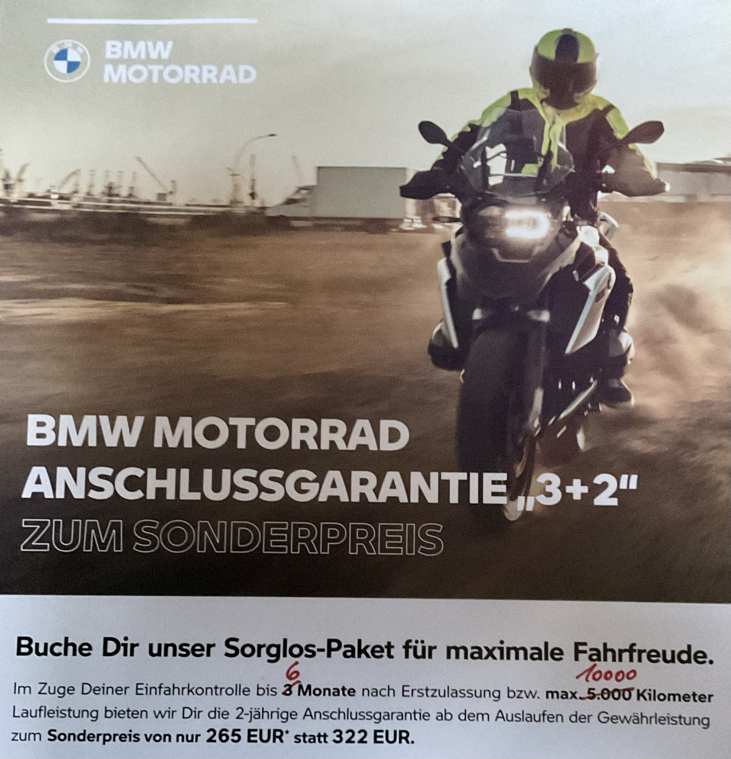 habe vorgestern in der Niederlassung Hamburg meine Garantieverlängerung gebucht. War erst unsicher, aber nachdem nun mein Helmfach den Geist aufgibt wars mir sicherer.