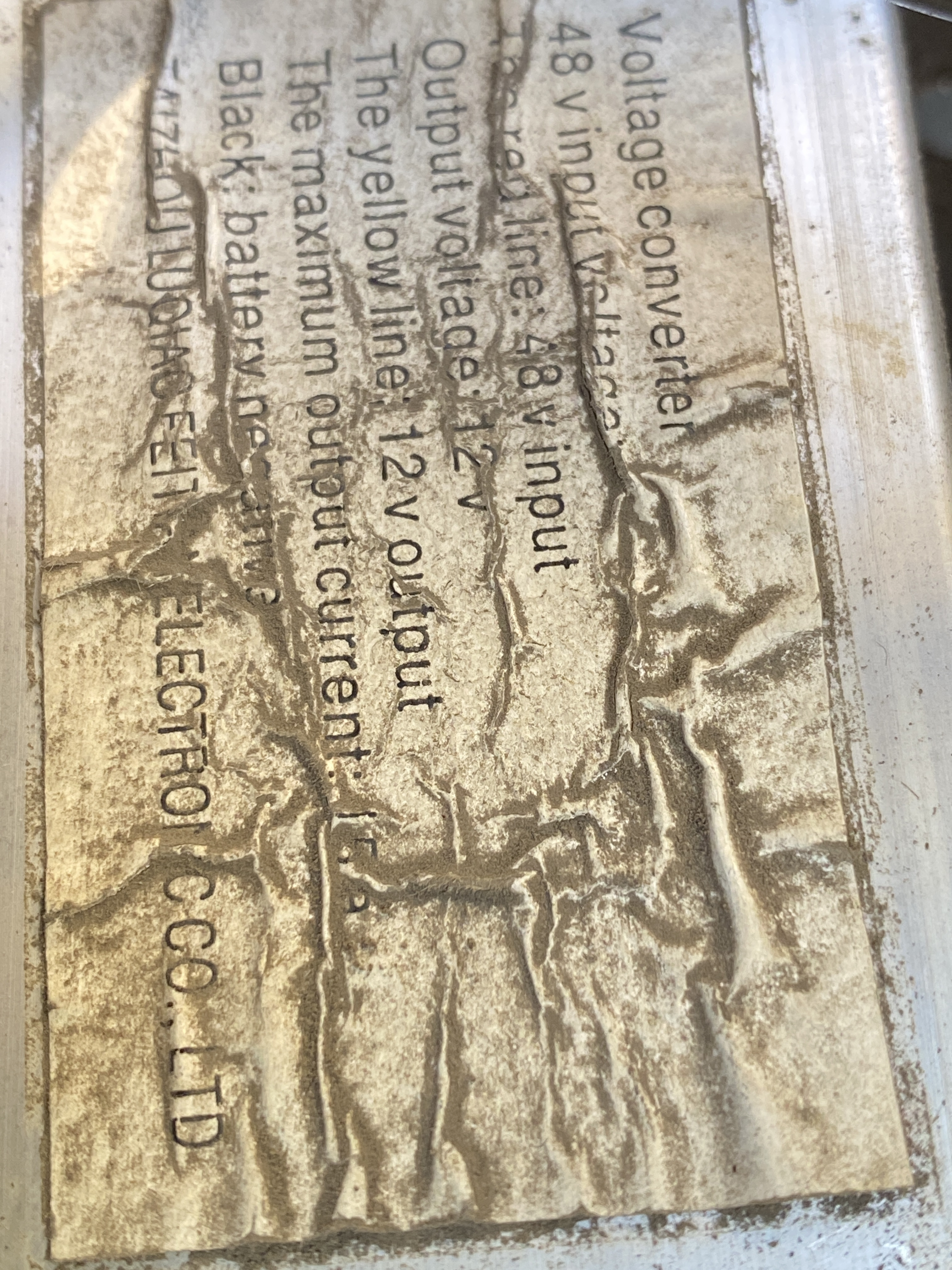 Eingangsspannung sollte mindestens 60V sein, Ausgangsspannung 12V und mindestens 10A.