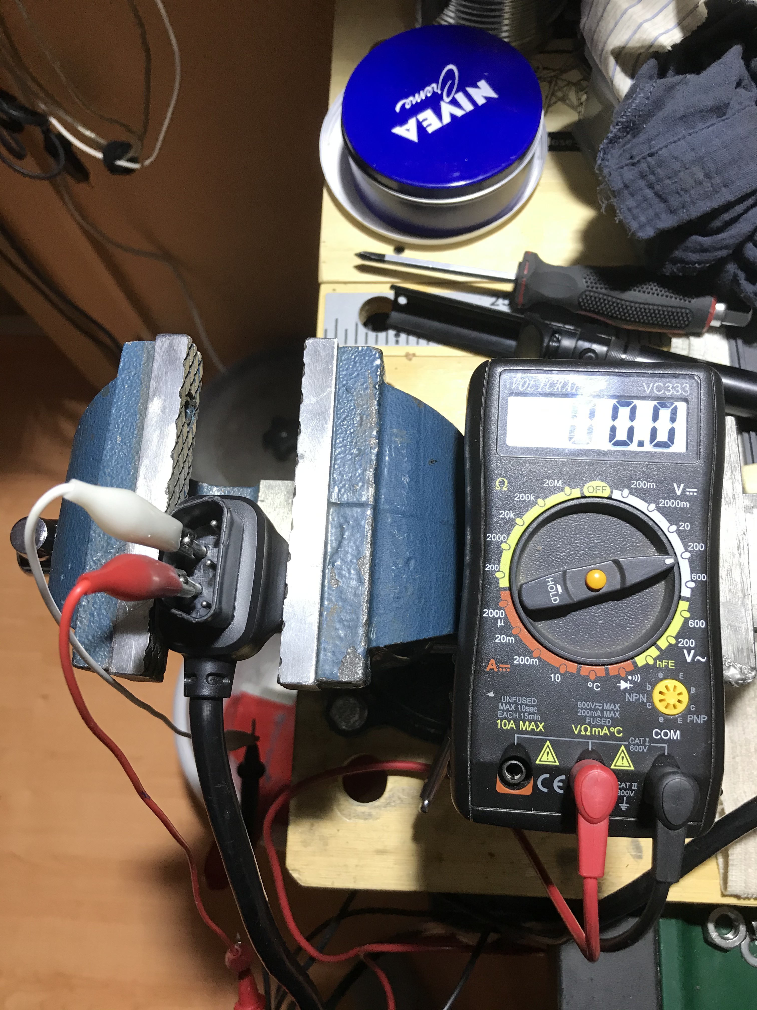 Den 3-adrigen habe ich ein paar male gezogen und wieder gesteckt gegen Kontaktkorrosion, darunter liegt noch ein fetter Halbleiter, der evtl. auch oder eher eine kalte Lötstelle haben könnte. Ich bin da also mal mit dem Lötkolben kurz drüber, wobei die Stellen schwierig zu erreichen sind.