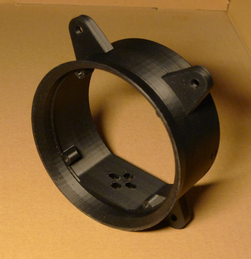 Falls jemand das nachbauen möchte, ich habe hier noch einen übrigen Halter herumliegen. Hinten noch nicht abgeschrägt, nur 2 Löcher für Kabelbinder: Edit: Gedruckt mit schwarzem ASA-Filament.
