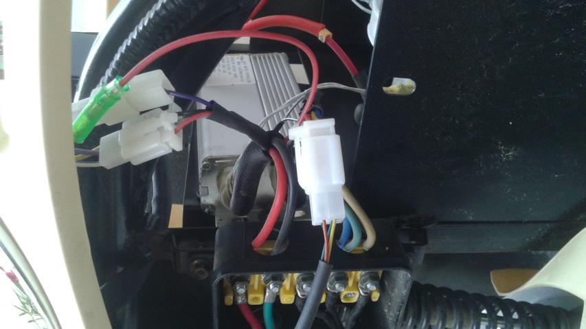 4. Bild von oben zeigt die Dose wo möglicherweise die Motorphasenverbindungen ist . gelb blau grün. vielleicht ist dort auch der Hallstecker.