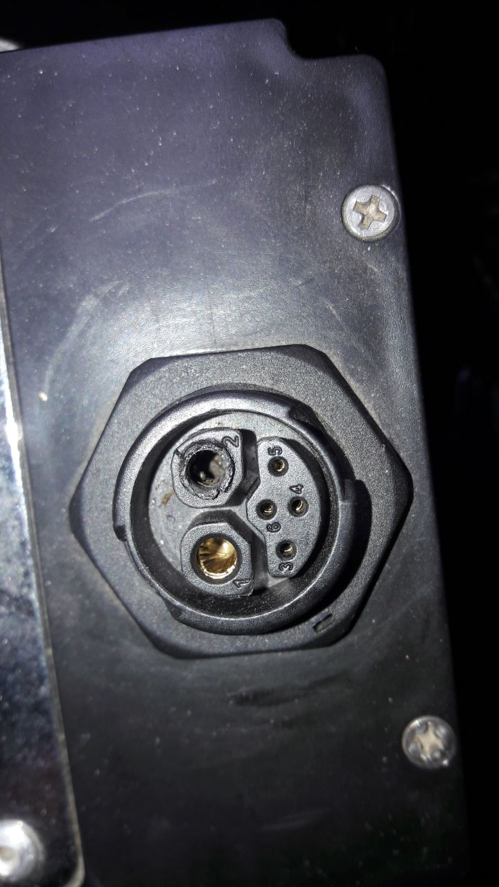 Der Boschdienst sagte am Telefon erst lapidar, Akkus könne man nicht reparieren. Mitarbeiter im Unu-Chat meinte aber, es könne am Kontaktstecker liegen, der könne von einer Vertragswerktstatt ausgetauscht werden. Nochmal Anruf Boschdienst, die meinten eher lustlos, man könnte mal auf Chance einen Stecker bestellen, das würde dann 150 € aufwärts kosten, aber würde wohl nichts nutzen, die hätten ja gemessen. Ich finde ja, der linke Eingang sieht komisch aus, aber ich bin technisch komplett ahnungslos, vielleicht gehört das ja so?