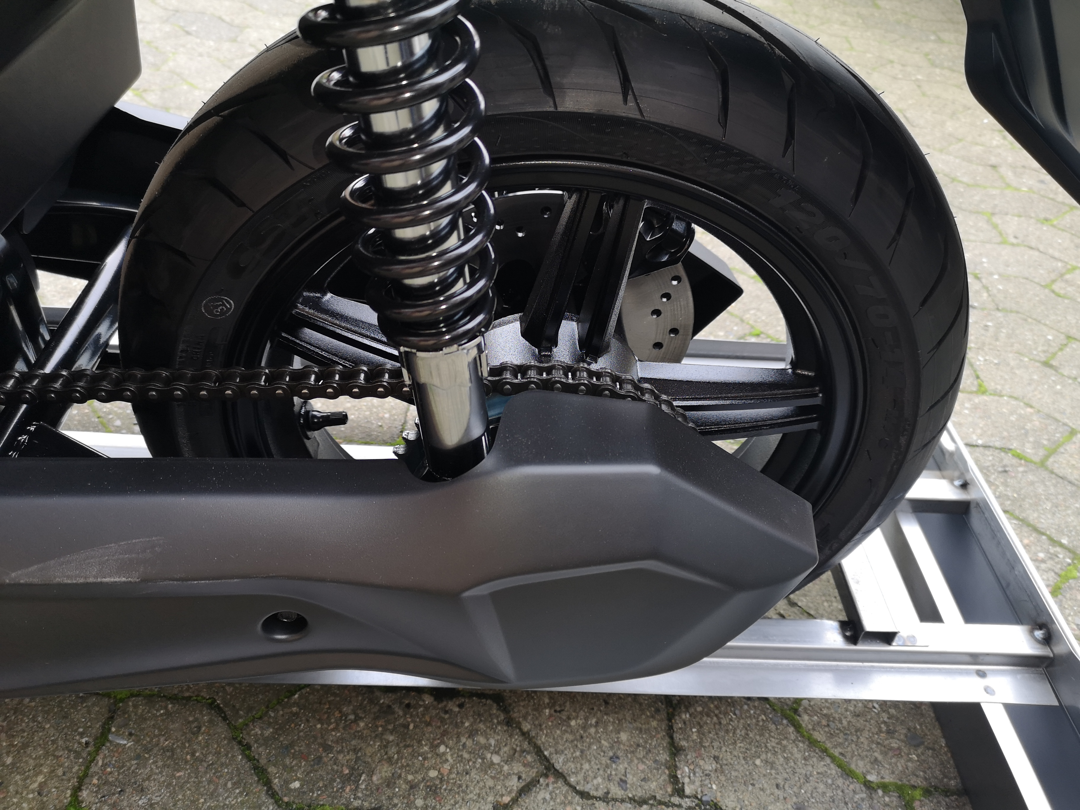 Die gesamte Gewichtsverteilung vom Roller ist besser wenn der Motor in der Mitte ( weiter vorne ist ) . Spätestes wenn noch ein Topcase montiert ist bekommen einige Roller lenkerflattern oder ähnliche Probleme weil zu wenig Last auf dem Vorderrad.