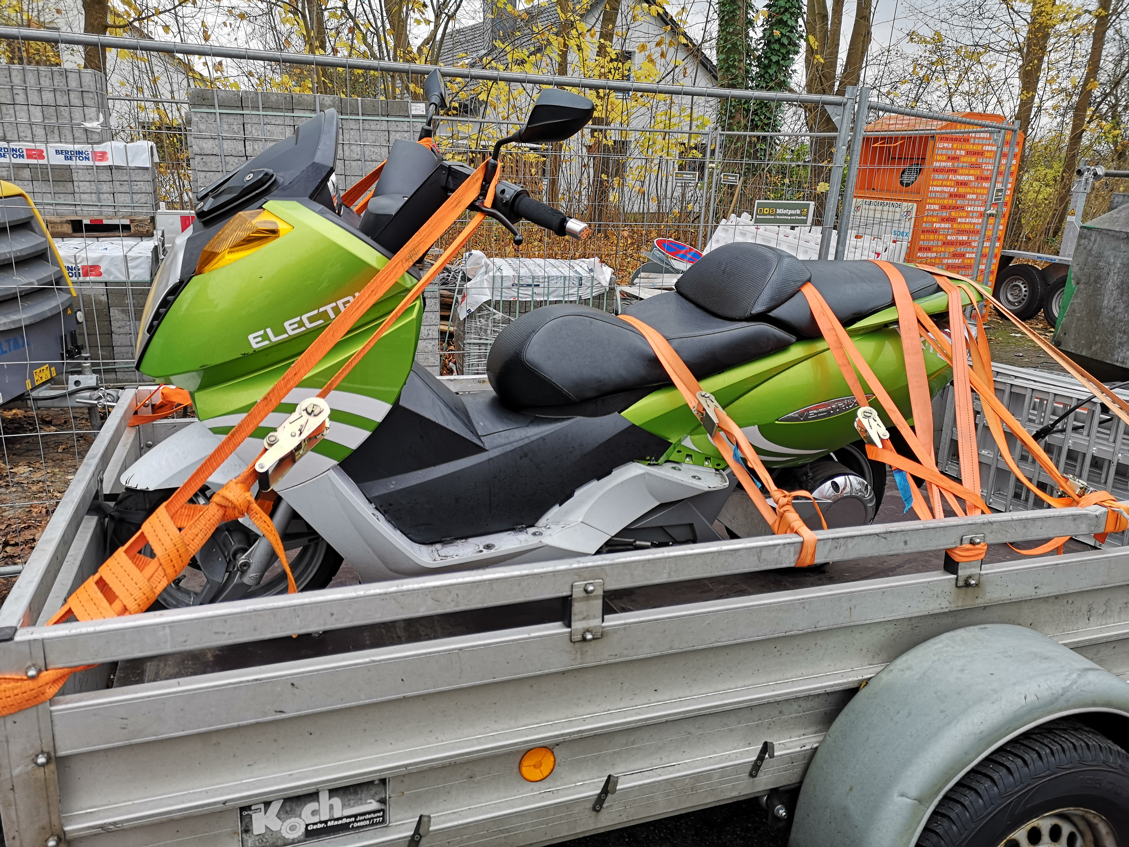 Der Vectrix in Grün-metallic ist jetzt unterwegs zurück in den Norden, Schnabelwesen war nach Abholung nördlich von Stuttgart zum Kaffee-Trinken und angeregten Plausch hier :D