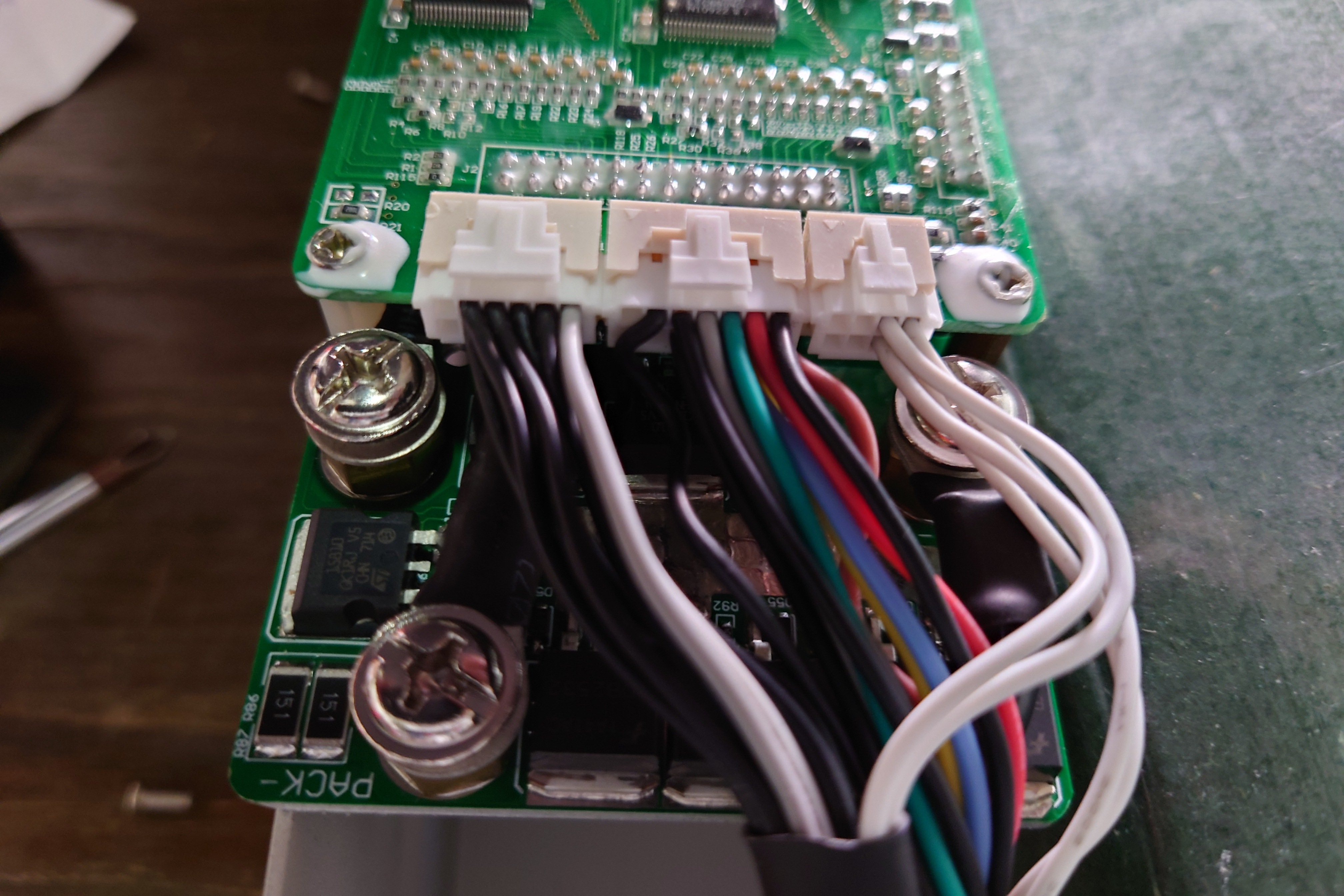 Nach einigen Tests habe ich volgendes festgestellt. Ohne Kabel funktioniert das BMS. Stecker links drinnen alles gut. Mittlerer Stecker drinnen, das
