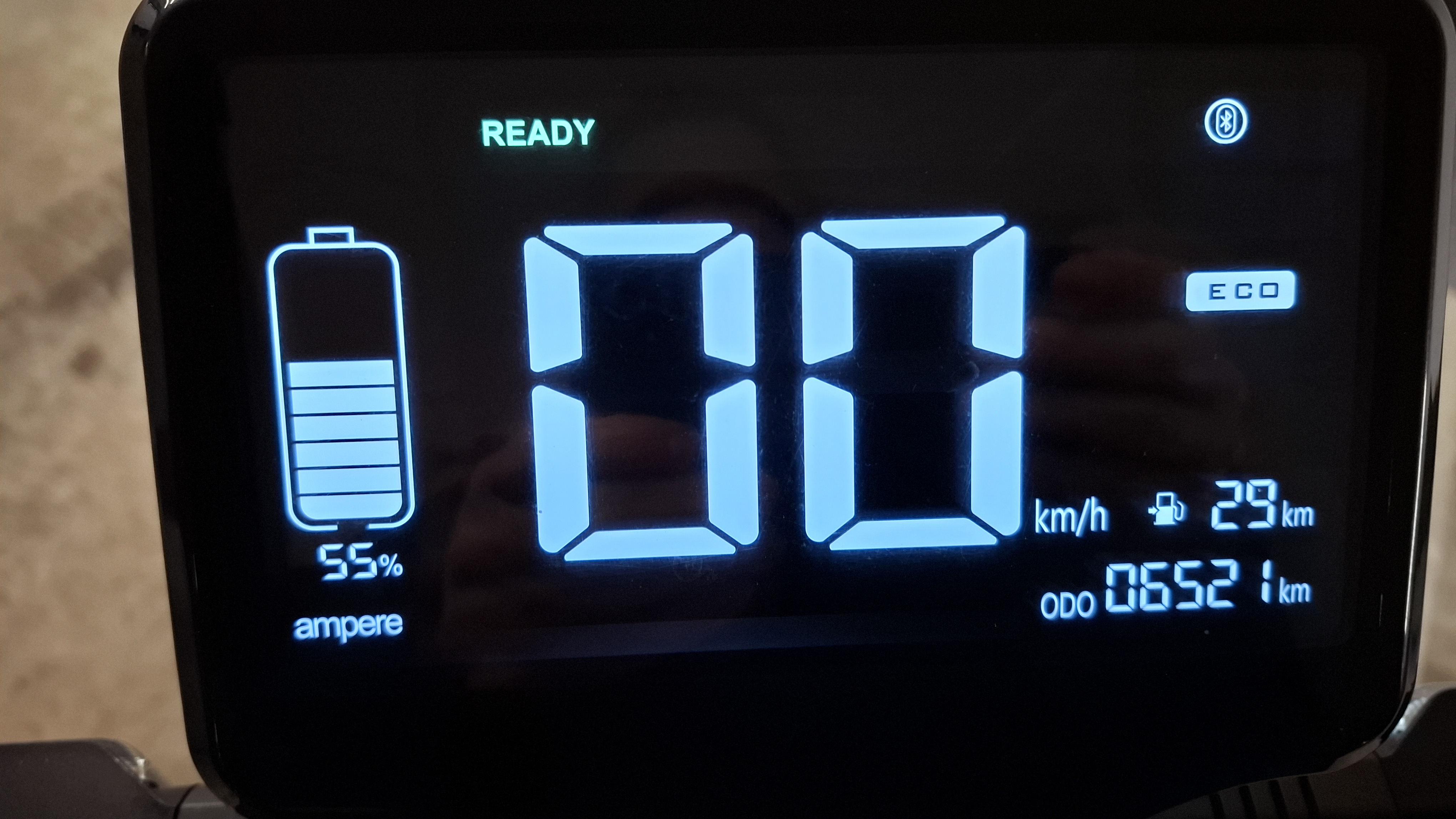 Thema Reichweite, ist primär ne frage der Geschwindigkeit und Batterietemperatur. Ich habe im Mai mit 8 und 10 Prozent Rest Akku ,84 Kilometer laut Tacho geschafft ( Tempo 48 ).