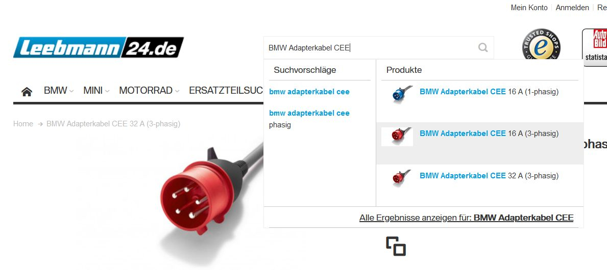 Die Artikelnummer des für uns richtigen CEE-blau-Adapters lautet: 61448490522