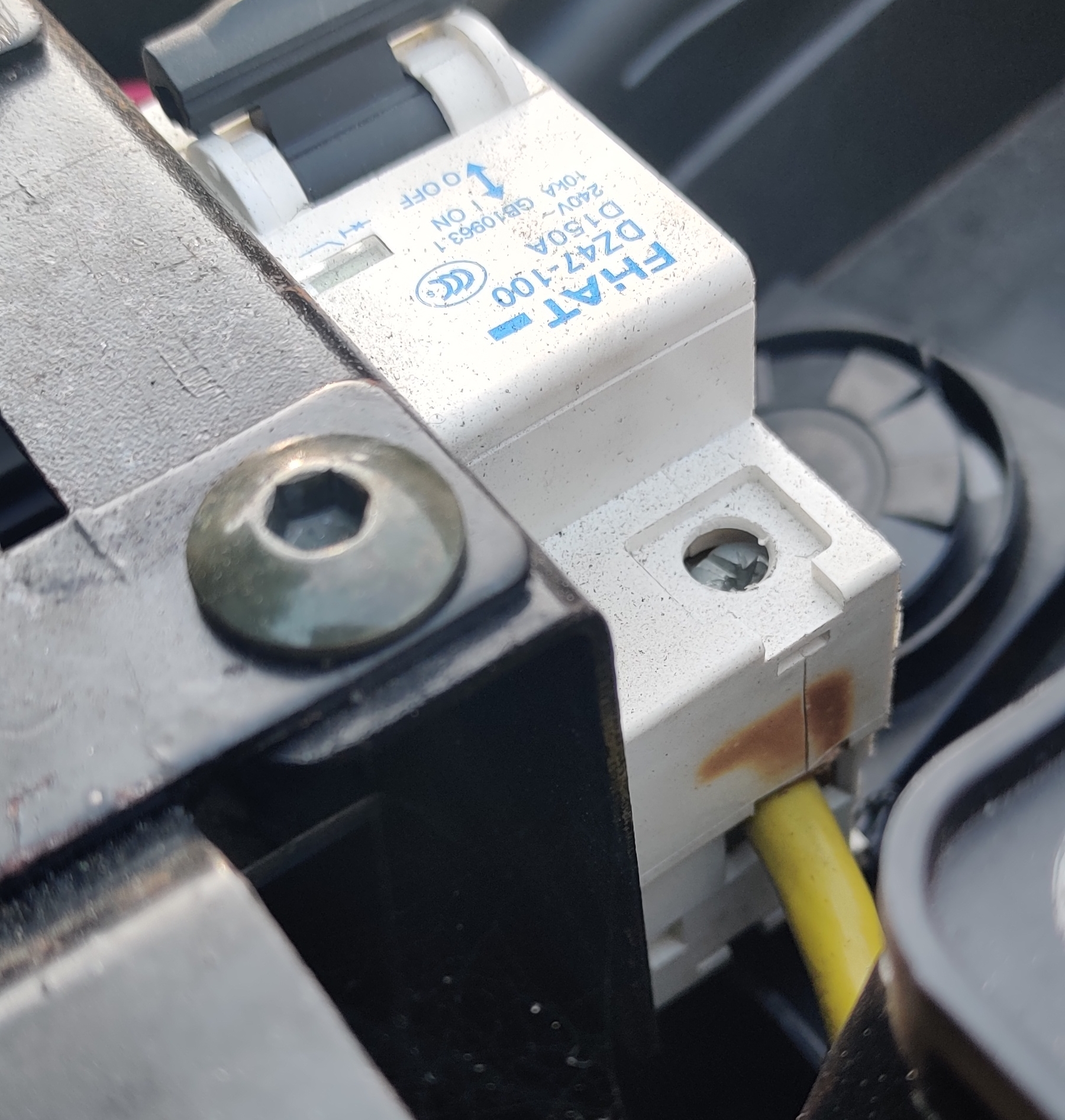 Mein Automat war dermaßen schief und krumm verbaut und mit Gewalt verschraubt, dass ich das Ding direkt entsorgt hab und eine ANL Sicherung verbaut habe. Den Anderson-Stecker zur Akku-Unterbrechung hab ich direkt mit unter den Sitz gebaut, in etwa wie bei der PV bzw. den PKWs dieser Abreiß-Kontakt mit roter Schnur.