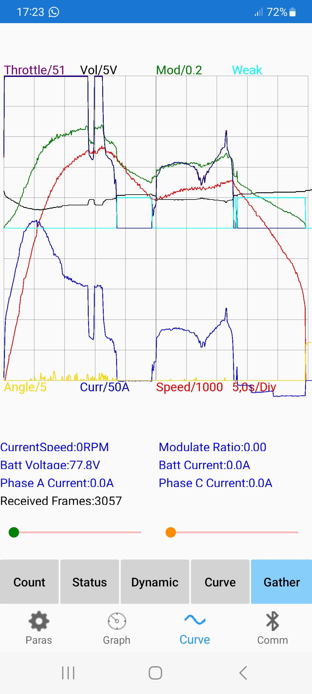And where can I completly disable the weakening field function? I know that I can reduce phase current in ratios of speed but downhill the controller does still do weakening field. If I set a ratio of 40% until the highest revs, the controller pushes my scooter from 103km/h to 115km/h and even more is possible, but the motor heats up fast while beeing feed with 18-20kw. With dissabled weakening field running with the sabvoton the scooter had a topspeed of 103km/h. Everything above has to be with weakening field.