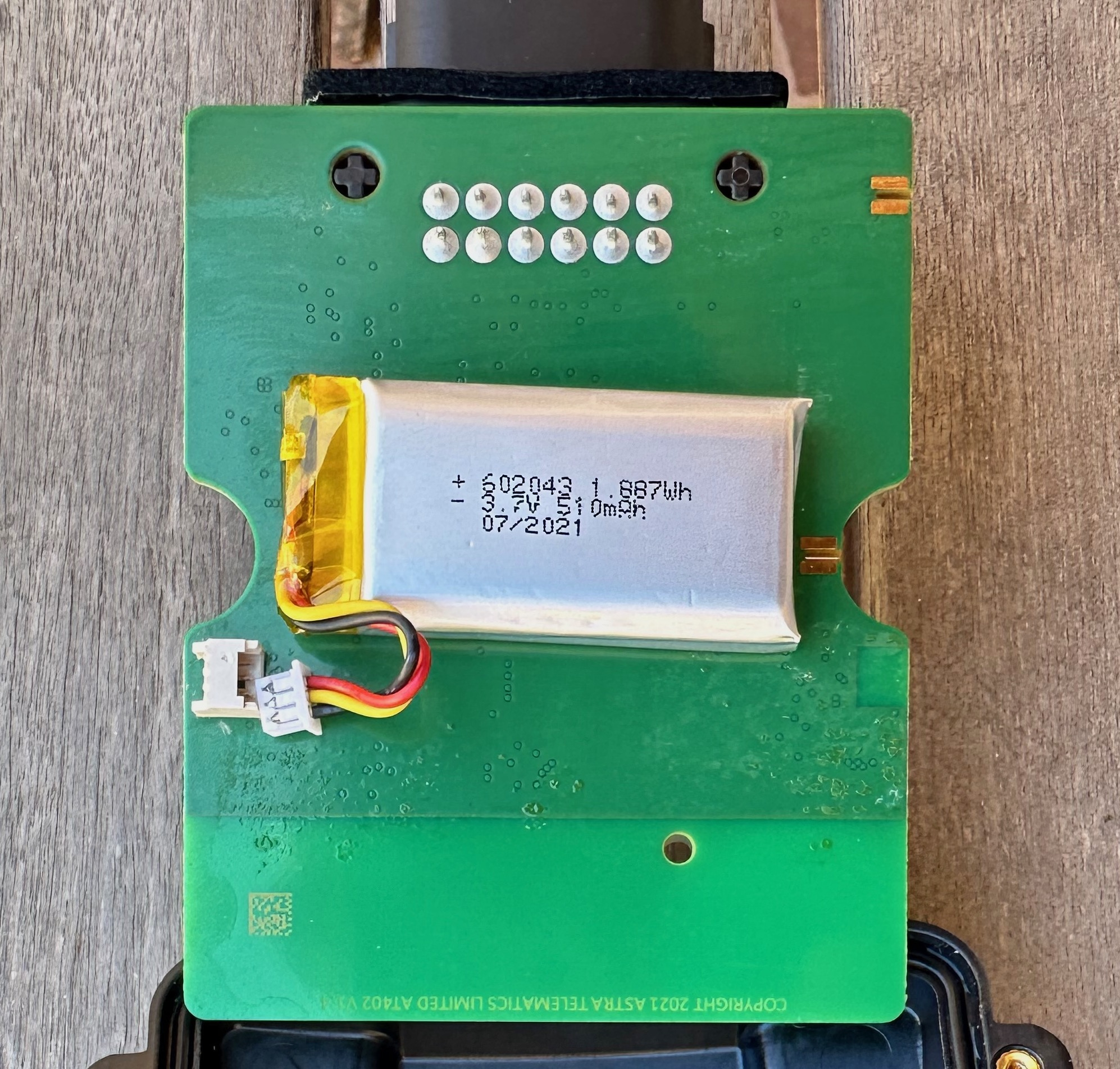 Es wäre ebenso denkbar, das Modul - wie Gerold es längst vorgeschlagen hat - extern mit 12V zu versorgen (laut Spec reicht irgendwas zwischen 5 und 60 Volt), das aber sicherheitshalber mit eingebautem Akku und Überwachung der Spannung. Das Modul sollte sich erst einschalten, wenn ein für den Akku sicherer Spannungslevel von mindestens 3,3V erreicht ist. Eigentlich lässt sich mit nicht allzu tumben Messspitzen die Spannung des im Modul angeschlossenen Akkus am Stecker seitlich von den Kabeln messen (da sind die Crimpklemmen gut zu erreichen).