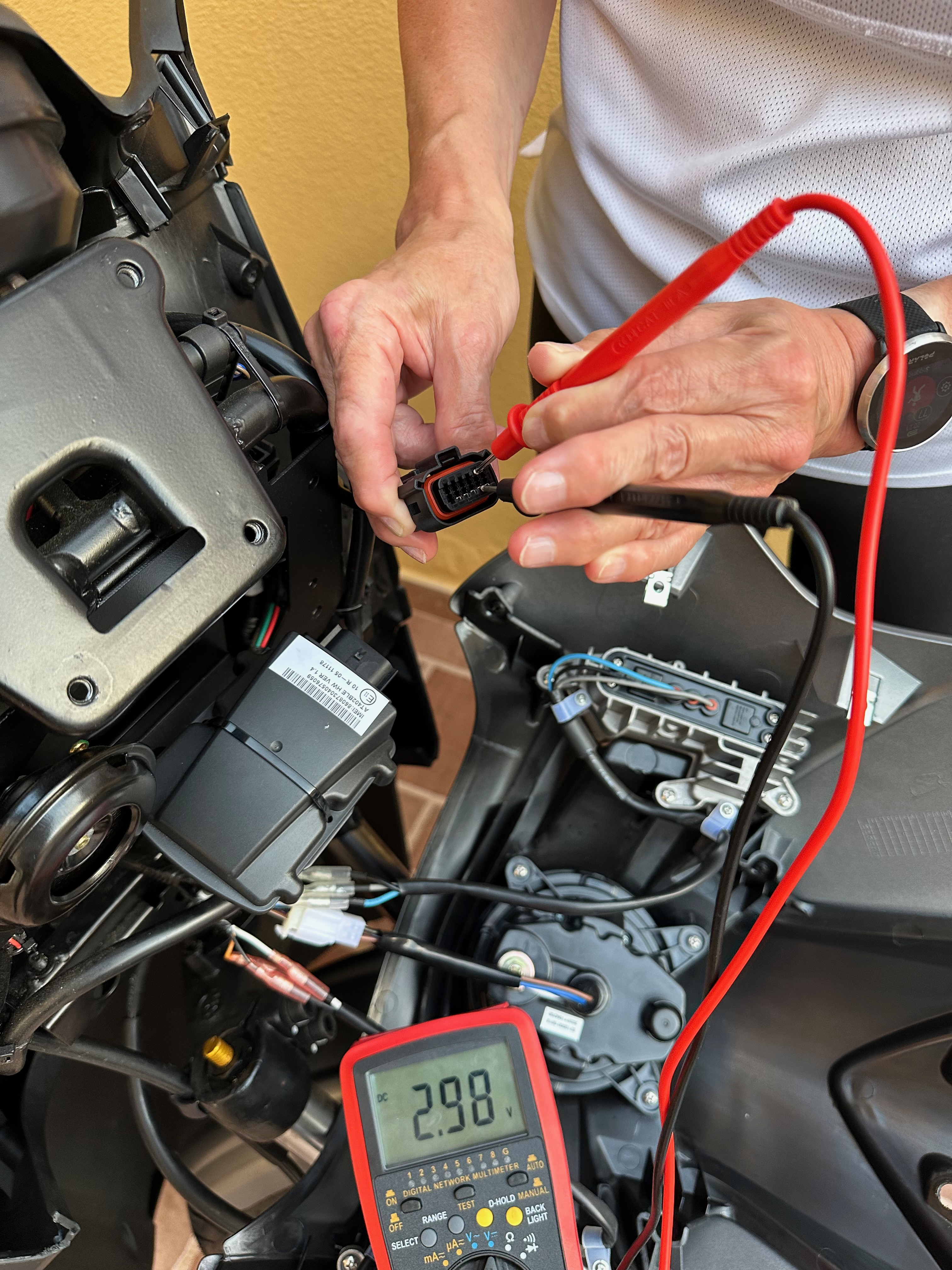 Danke für das Handbuch. Der Li-Akku der TCU hat keine Spannung mehr. Bei ausgeschalter Silence liegt an weiß (Pin 4) offensichtlich nur eine Spannung von 2,97 V an (siehe Bilder). Das dürfte wohl zu wenig sein, um den Li-Akku auf 3,7 V zu halten. Was müsste da an Spannung messbar sein? Ich habe jetzt ein Li-Akku-Ladegerät bestellt. Das wird auf Fuerteventura aber wohl erst nach meinem Werkstatttermin am Mittwoch nächster Woche kommen. Zudem ist dieser Li-Akku ja jetzt sicherlich tiefentladen und "tot".