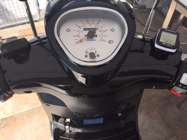 Derzeit begnüge ich mich auch mit einem Sigma Fahrradcomputer BC 12.12. Neben Speed, Tageskm, Spriteinsparung (bei E-Roller tatsächlich nützlich?!,Temp und noch Einiges mehr wird auch die echte Geschwindigkeit (GPS genau) groß angezeigt.