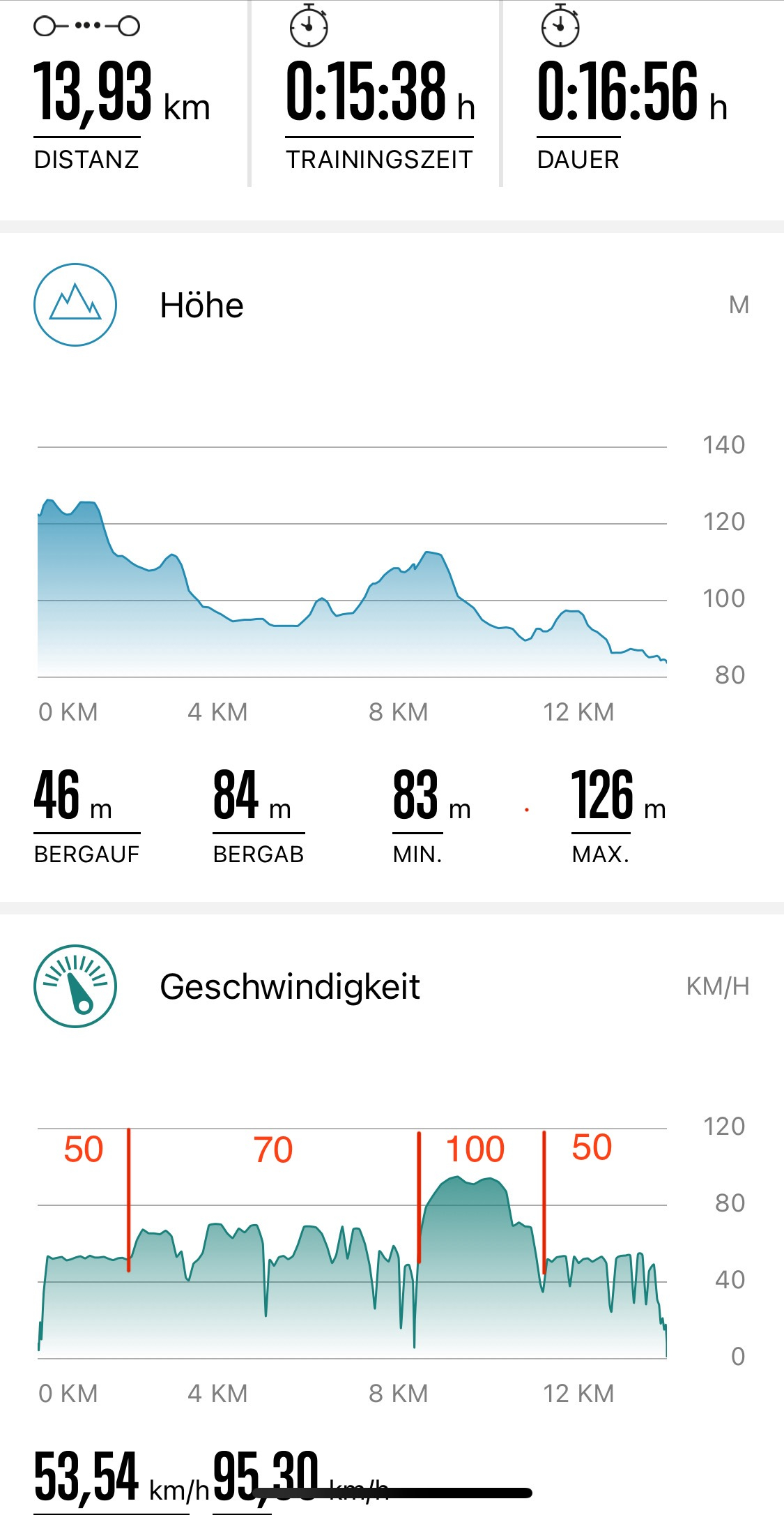 Das ist mein Hinweg zur Arbeit. Und das halt 2mal hin und zurück. Die restlichen 4km waren mit so 55kmh.