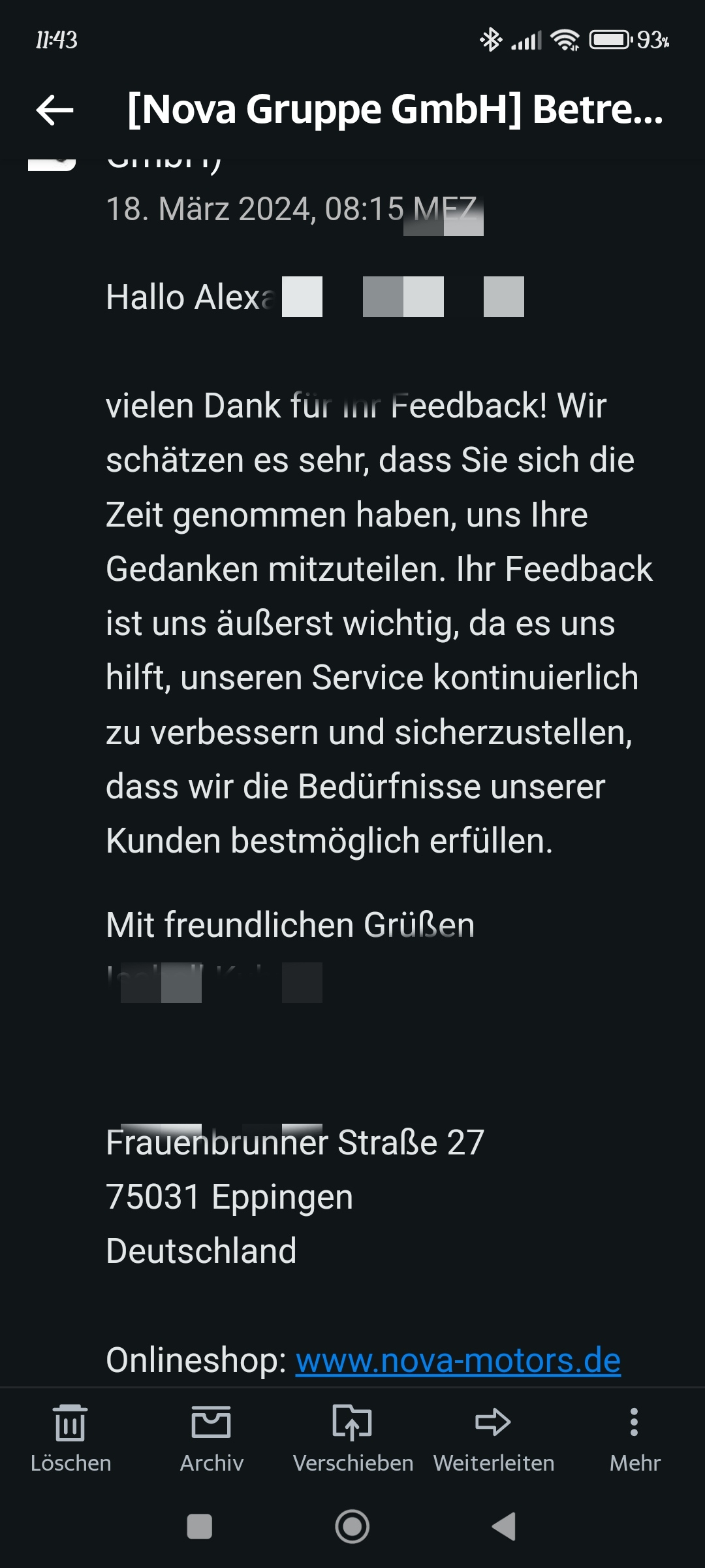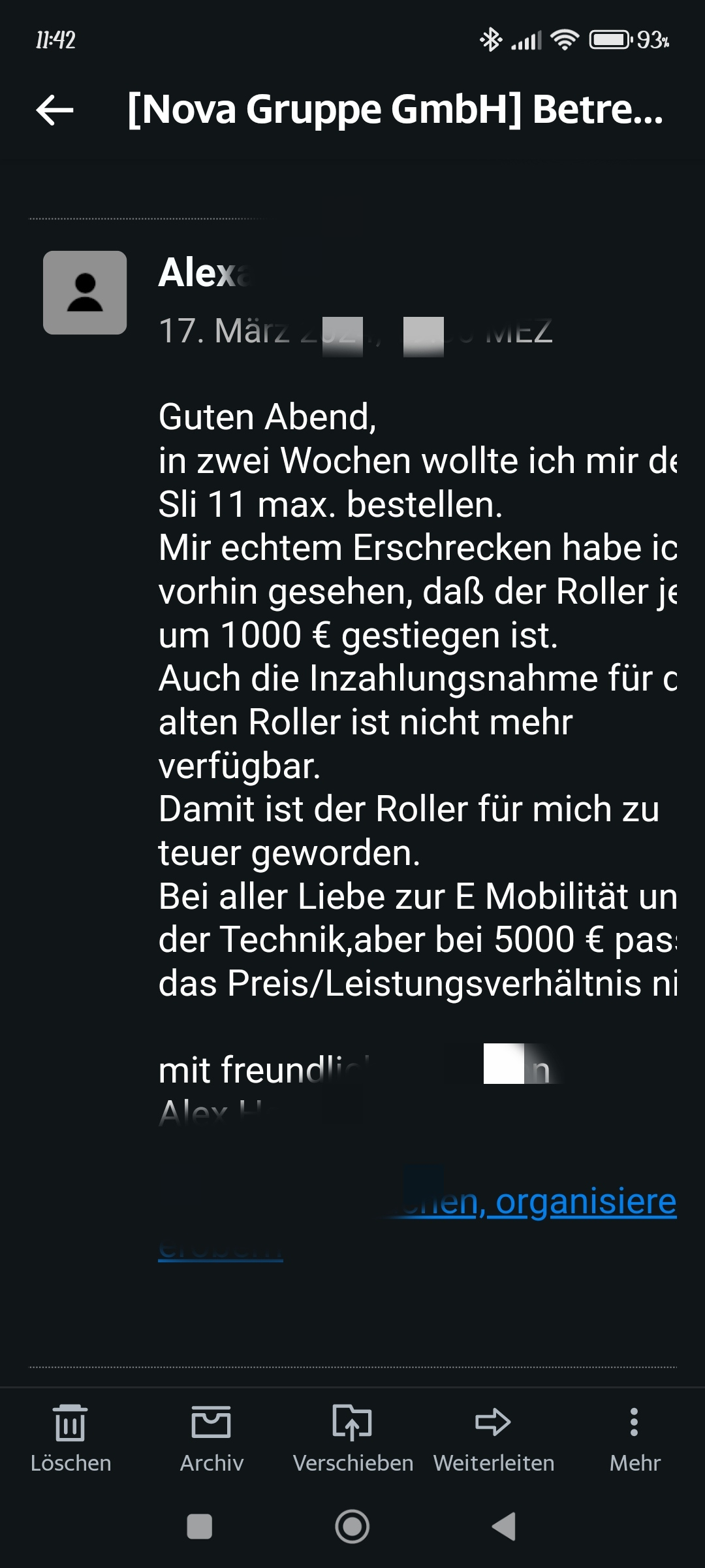 Aber die Antwort die ich erhalten hätten die sich sparen können.