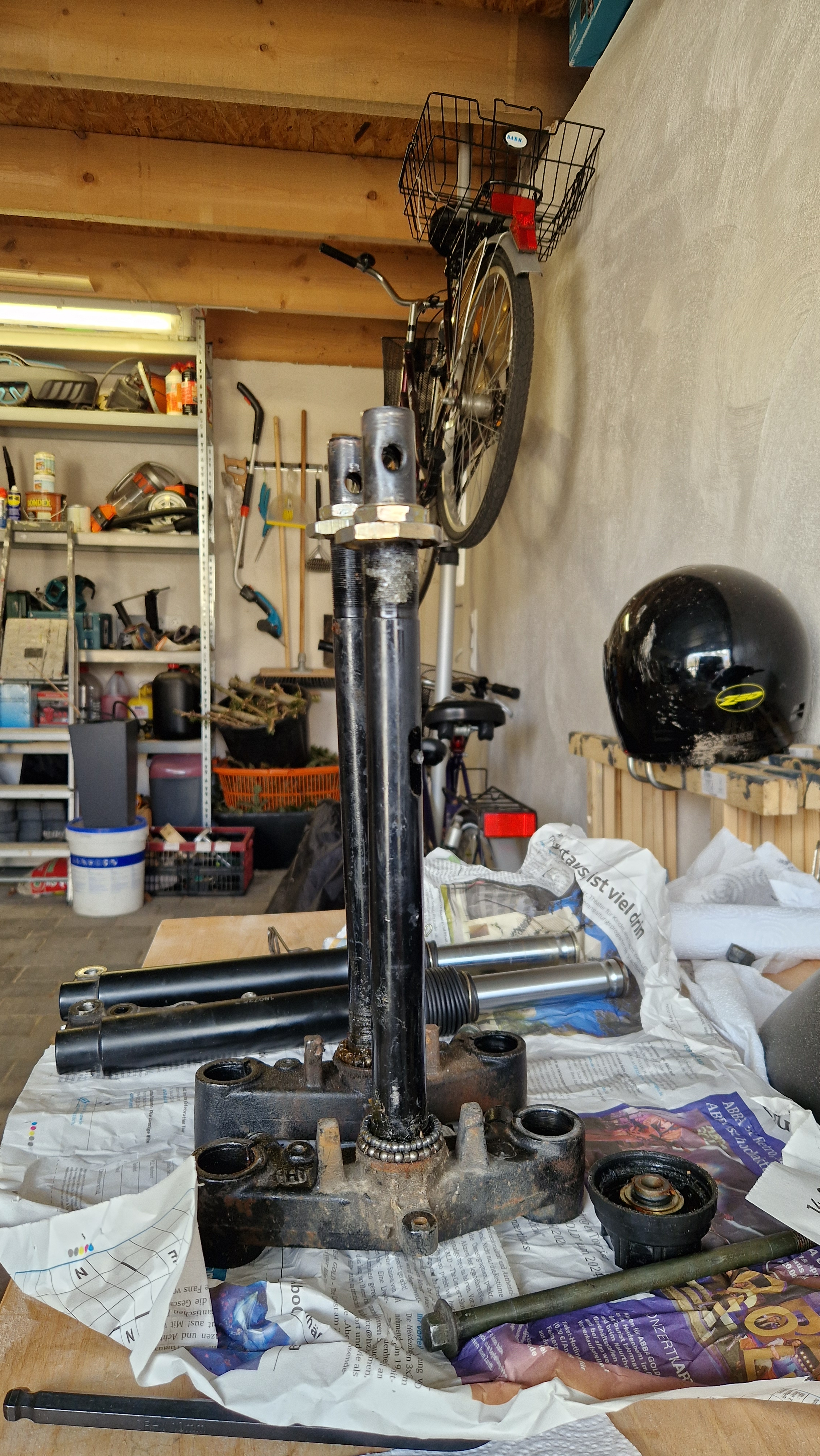 Dank des Kleinanzeigen Links von @Julinho habe ich sowohl die Federgabel als auch die beiden Federbeine besorgt und heute getauscht. Turns out, die Gabel war dann doch das Problem und ich konnte mit den Ersatzteilen die Kiste wieder reparieren. Danke an alle Tipgeber und Motivatoren