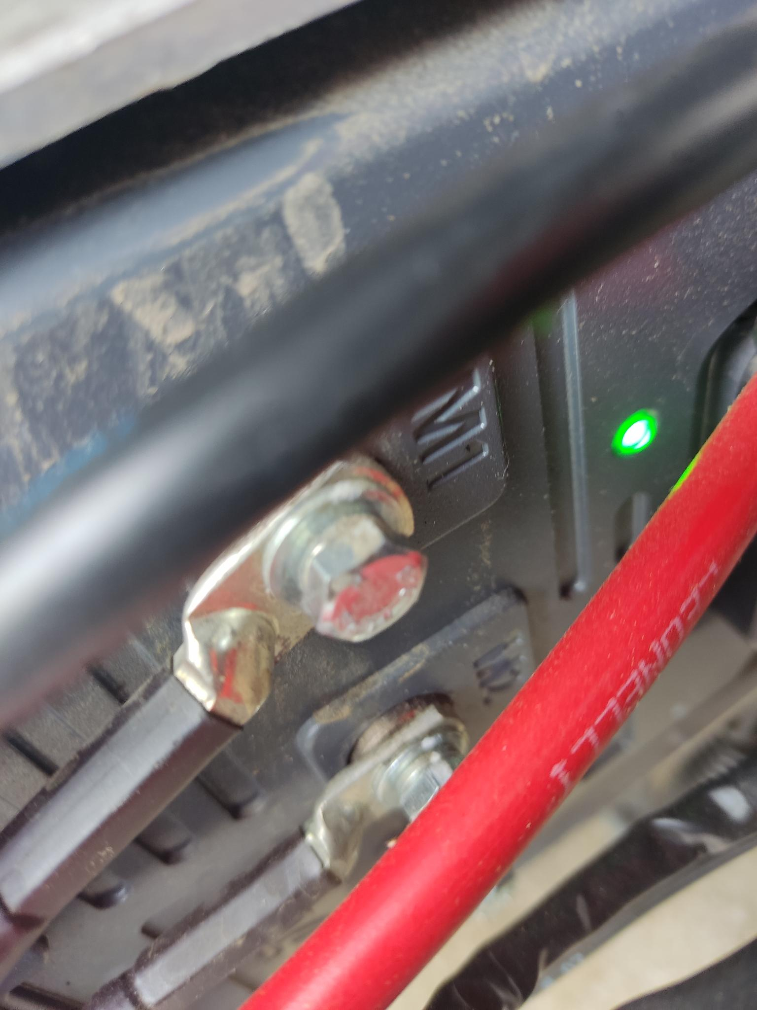 Auch keine Feuchtigkeit, dafür angemessen Dreck, der unmittelbar am Kabelaus/eingang Akkuseitig deutlich ist. Die "Wellrohre" zum Schutz der "dickeren" Kabel scheinen eindringende Partikel leidlich/passabel abzuhalten.