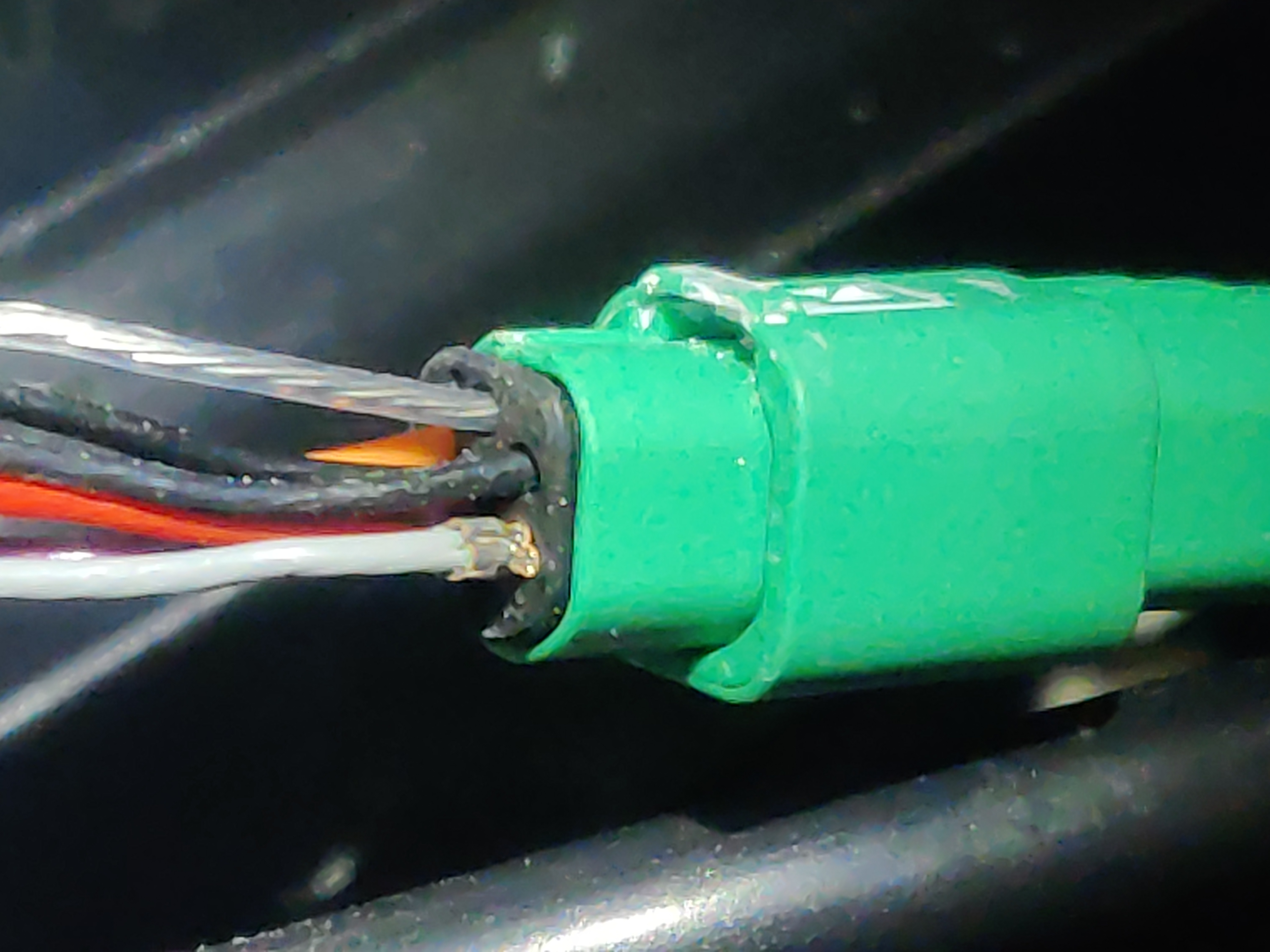 Soweit keine Feuchtigkeit alles fest, bei genauer Inspektion des Rückmeldeleitung der Hallsensoren an den Regler habe ich unter Schrunmpfschlauch versteckt eine sehr filigrane Steckverbindung gefunden. Beim Zupfen an den einzelnen Adern kam mir eine graue Ader entgegen, diese war nicht richtig im Stecker verastet.