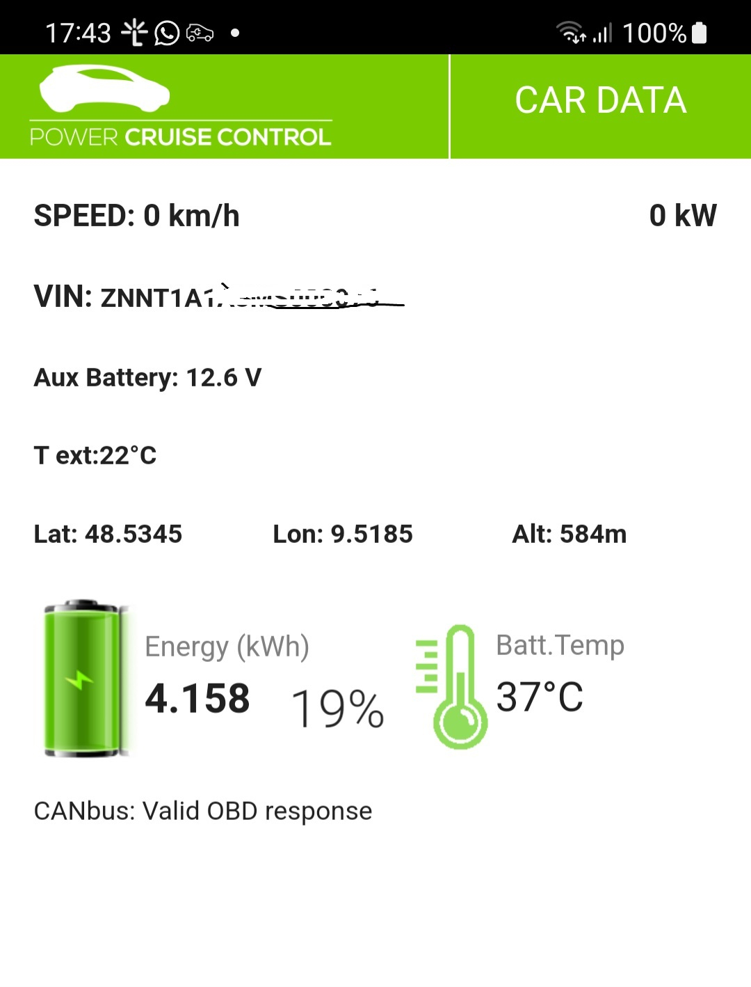 Dann gibt es noch die alte Energ1ca-App vom Belgier Hans Capelle, in der man die im Akku entnehmbare Energie ablesen konnte. Selbst im Sommer hatte ich bei SS9+/Ribelle nie mehr als 16,5kWh gesehen.