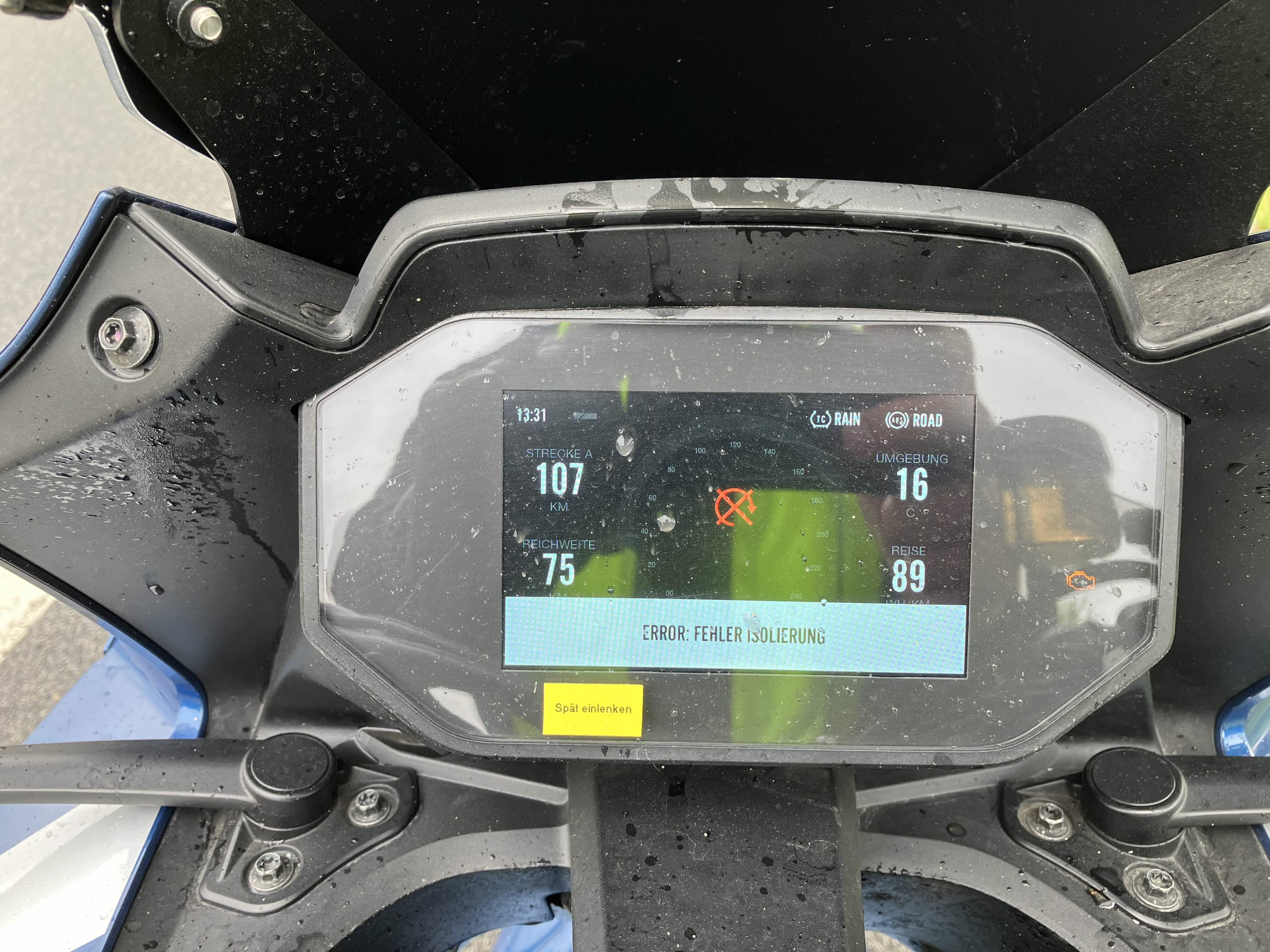 Bei der Dolomitentour im September sind wir ums Stilfserjoch in leichteren Regen gekommen, da hat sie trotzdem gesponnen mit Fehlermeldungen 31 und 43 lief aber bis ins Tal weiter.