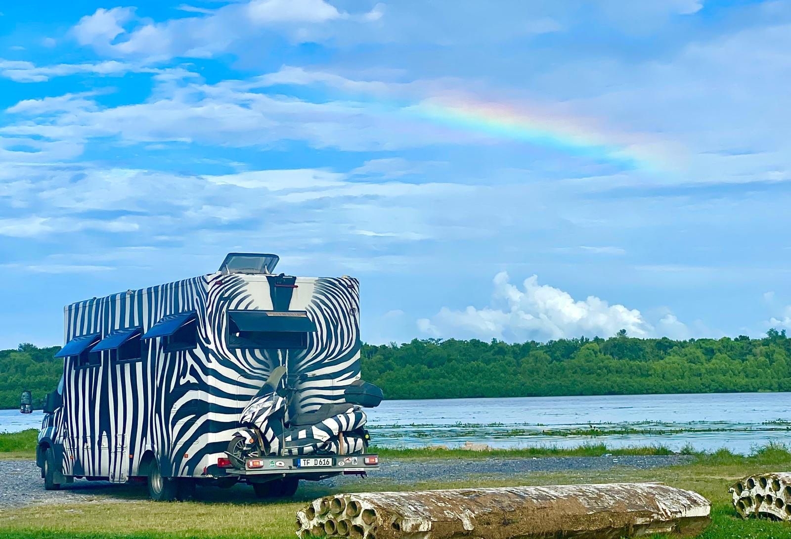 Selbst den Roller unter einer Plane hinten auf dem Wohnmobil zu haben, hilft nichts bis noch weniger.