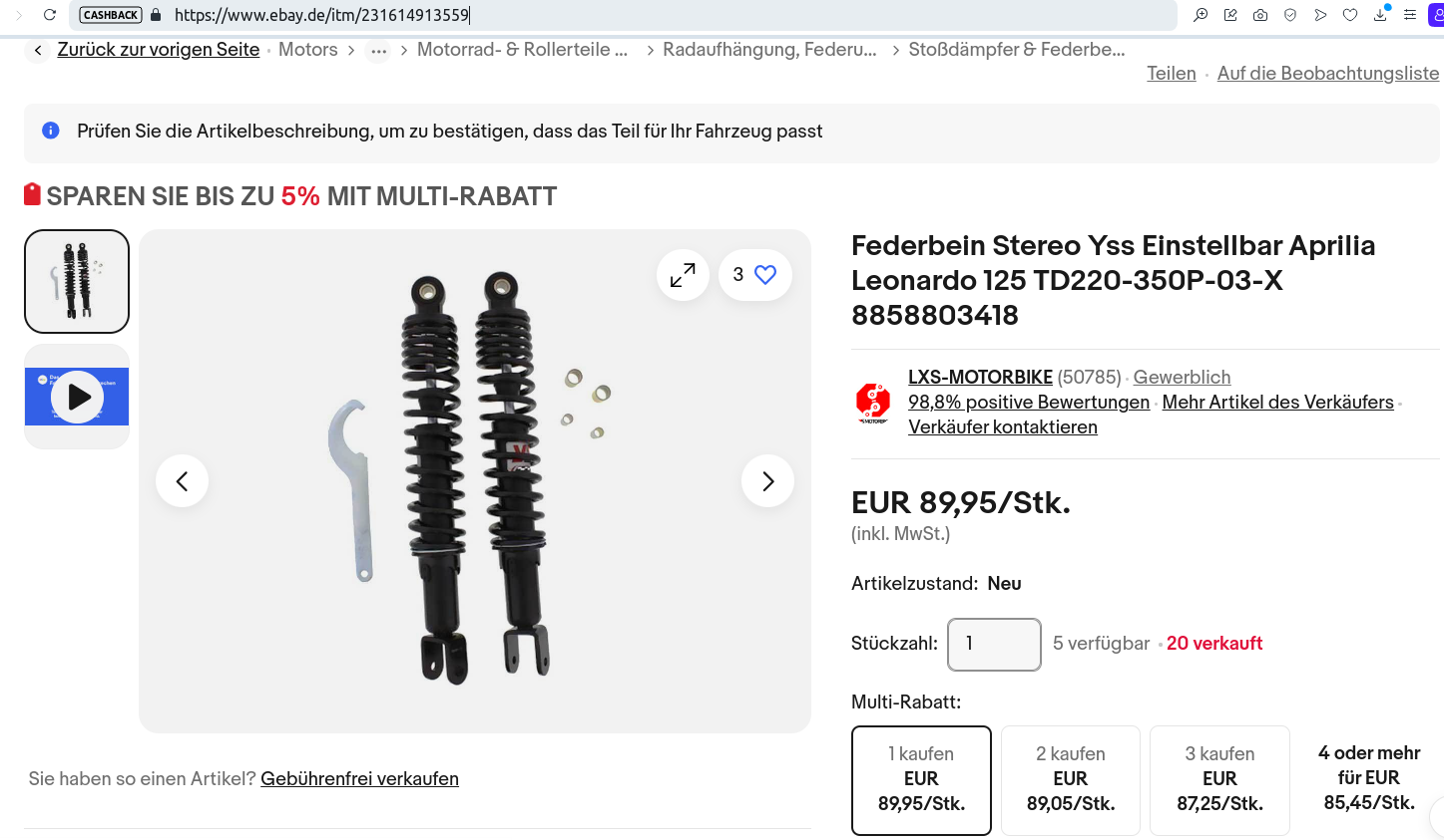 Jetzt muss ich 'mal blöd fragen... Bei eBay habe ich die passenden Dämpfer gefunden. Typ YSS TD220-350P-03-X: