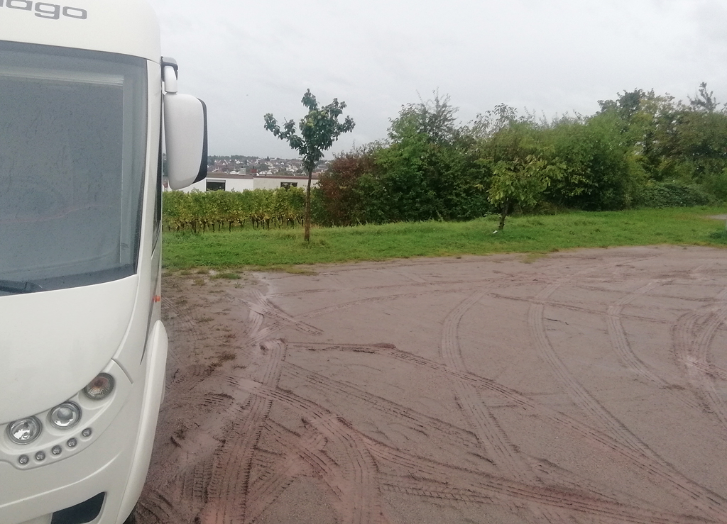 Aber ich habe das Trike nicht aus dem Mobil geholt, der Regen hat den Platz in einen Schlammwüste verwandelt. Also bin ich diese steile Straße jeden Morgen zum Bäcker gelaufen.