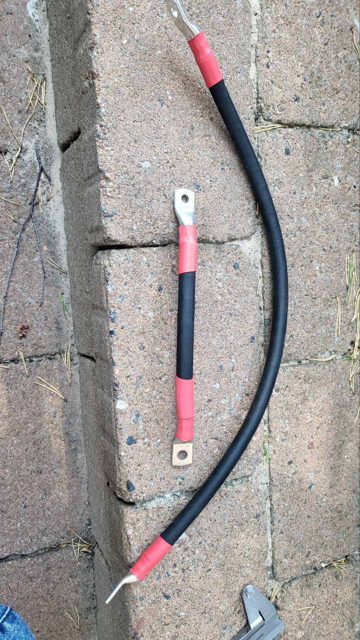 Die Kabel sind auch keine Raketenwissenschaft: auf der einen Seite ein M8-Kabelschuh, auf der anderen ein M6. Das wars.