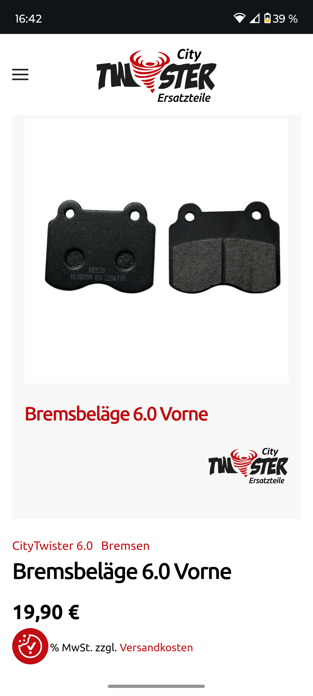 Wir haben noch die Bremsbeläge hinten gewechselt. Gefunden bei City Twister. Da sind sie aber als Bremssbeläge für vorne angegeben. Die Artikelnummer ist aber identisch.