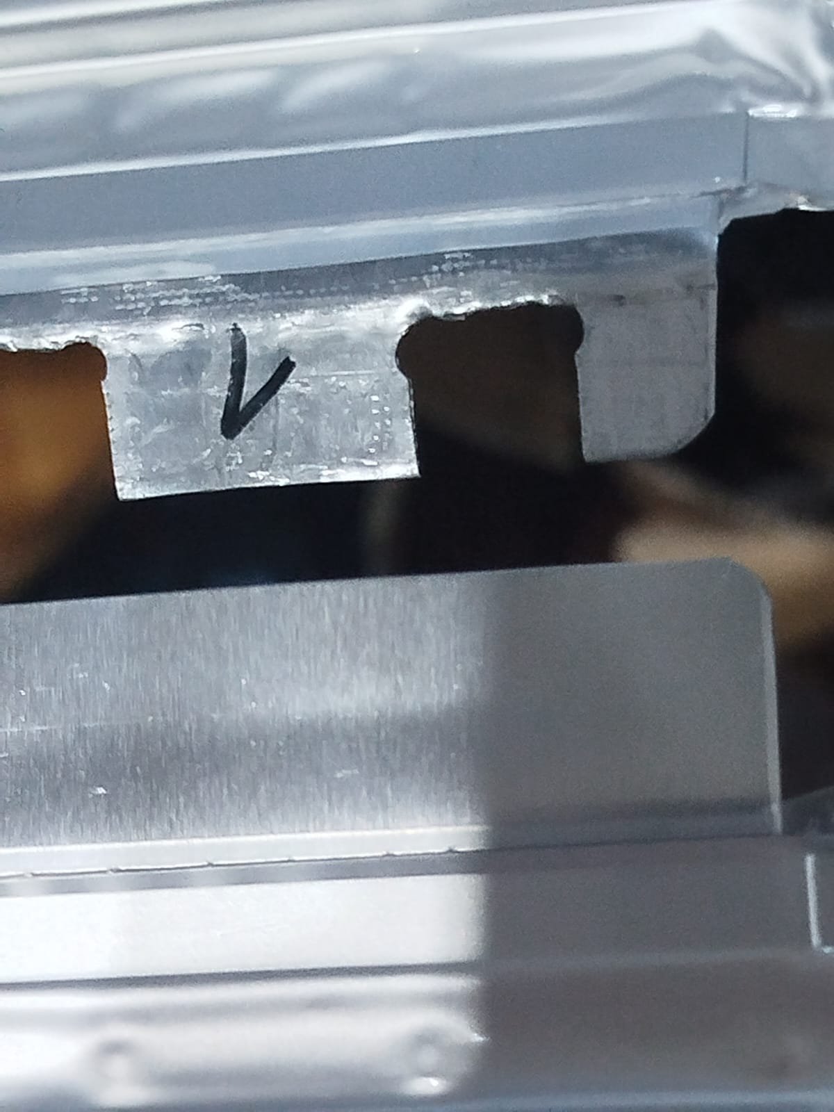Im Bild oben ist eine alte Zellenlasche vom Pluspol und unten im Bild eine Neue.