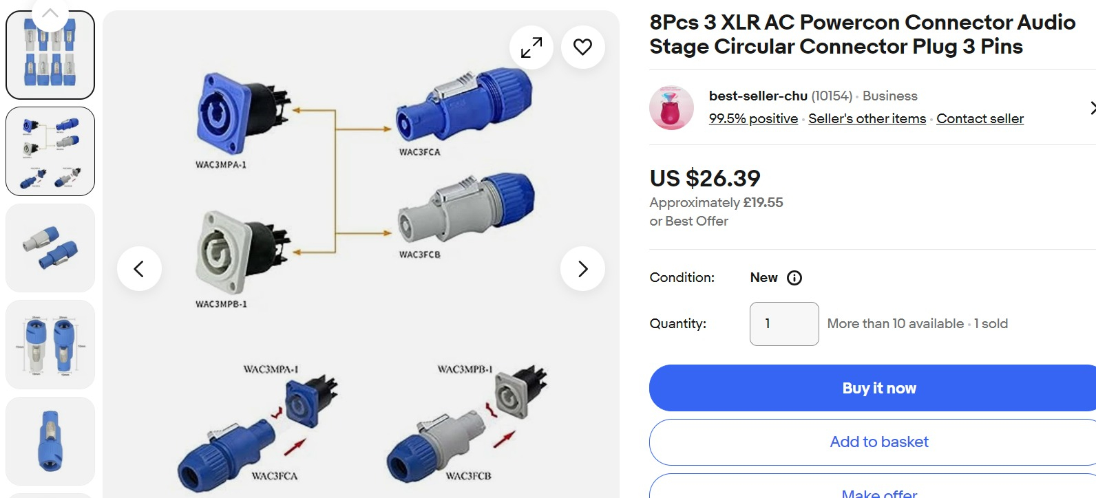 But I've choosen these SP28 waterproof aviation connectors (3-pin version), because I'm using up to 40A charging current.