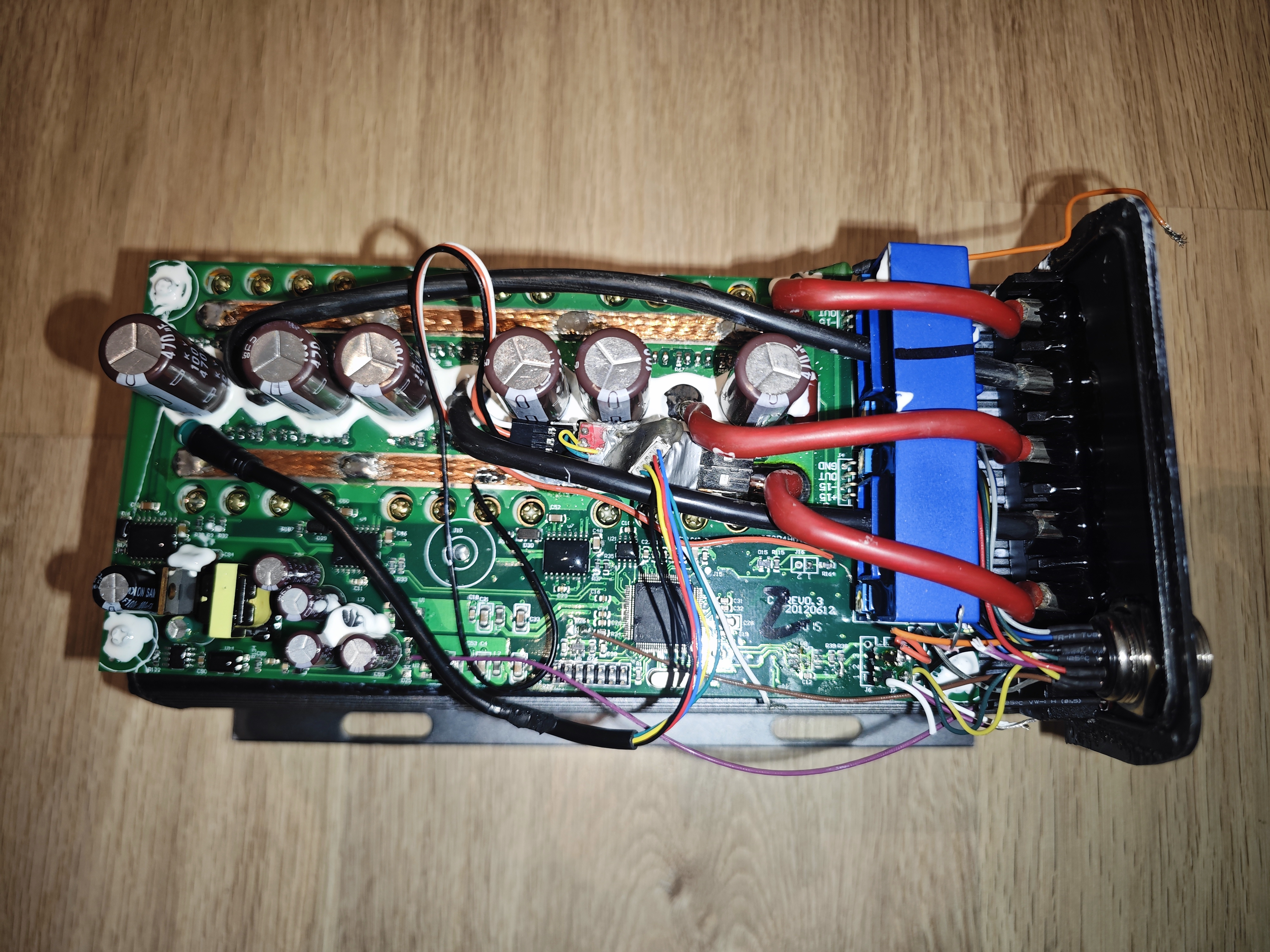 Update : ich habe den chip direkt per UART ansteuern können mit der alten mqcon Software , ist so wie es aussieht ein sabvoton 72150, die mosfets sind 97A 100v mosfets und davon 8 Stück pro phase . Max current limit kann man auf 350A pro phase Hochregeln geht ab wie Sau.