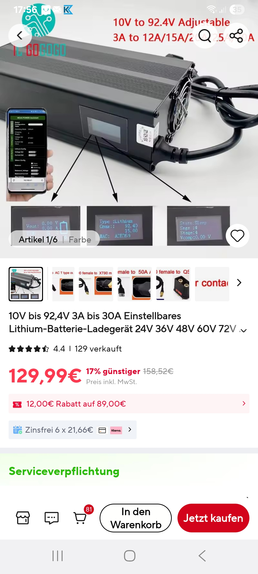 Stehe davor, mir ein besseres Ladegerät für meine Wuxi mit 1 bis 2 KW Ladeleistung und 84 V DC zu kaufen,