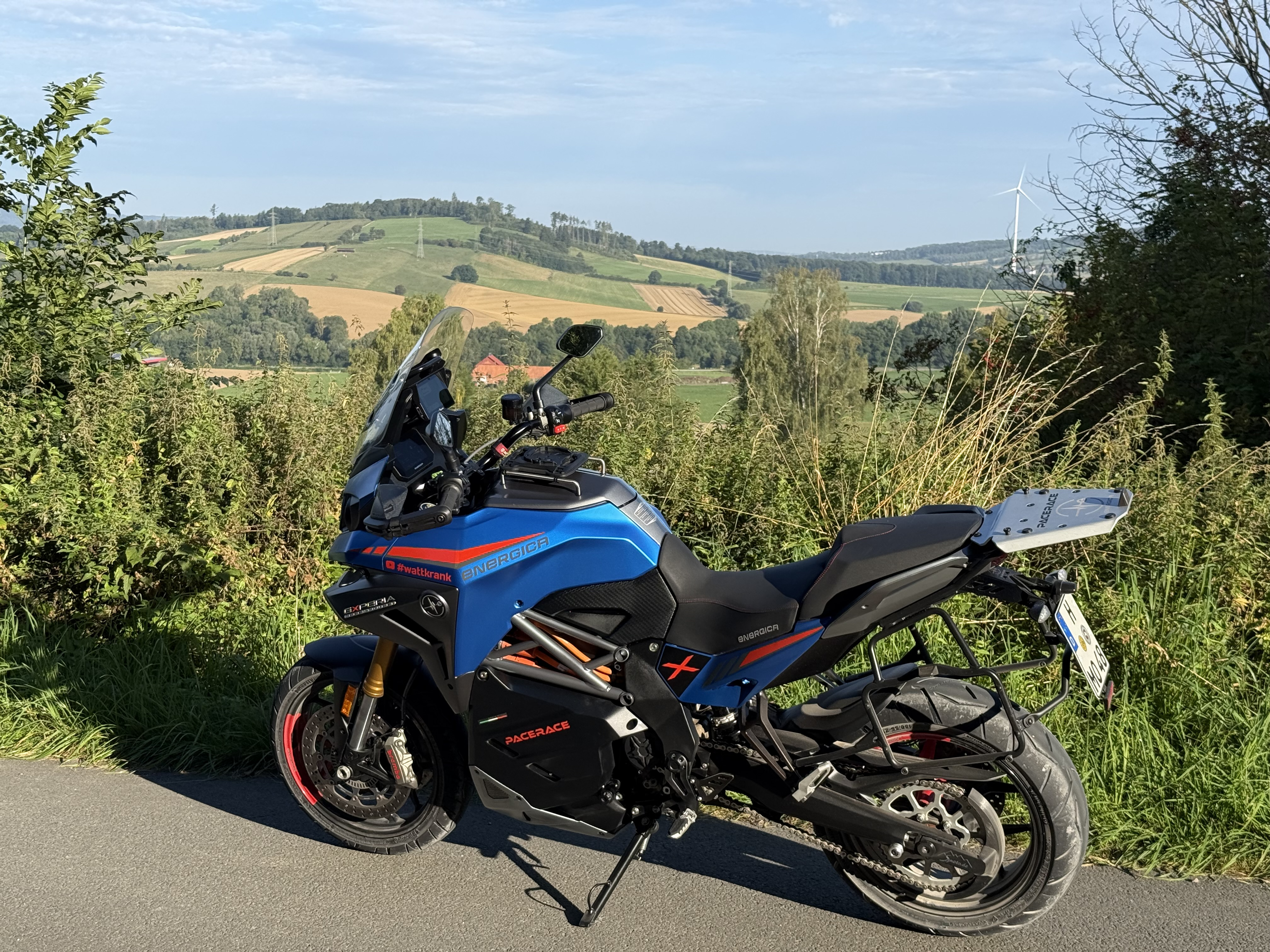 Meine Energica Experia besitze ich seit dem 1.7.2025 und bin damit schon über 6000 faszinierende Kilometer gefahren! Ihr Erstbesitzer kaufte sie neu in Andorra und zog nach einem Jahr damit nach Dänemark, wo er sie anmelden und verzollen musste! Nun ist diese Experia als erste ihrer Art in Tschechien zugelassen und ich bin stolze Besitzerin