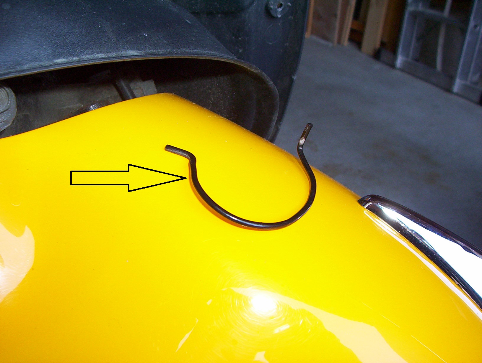 Solche Bügel halten / führen die Kabel / Züge zusammen und ab vom Scheuern. Such nach zwei Löchern,wo der Bügel eingehakt wird.