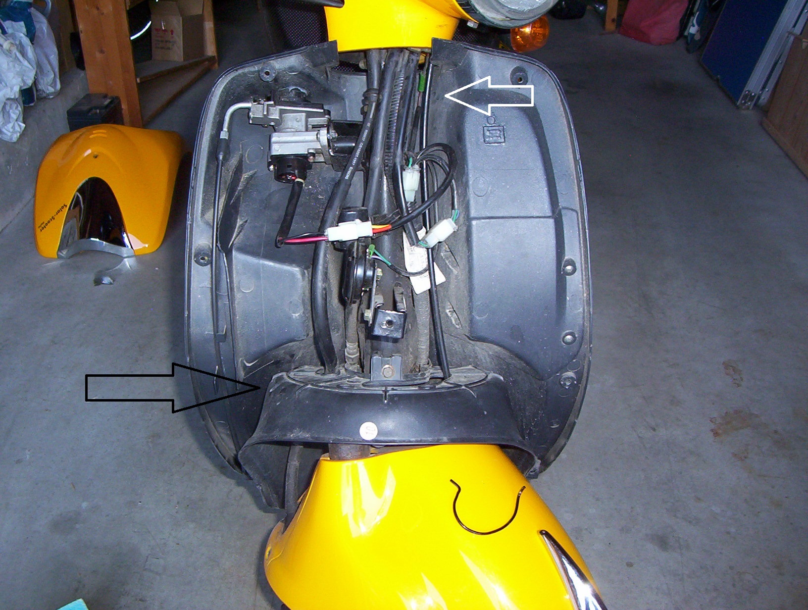 Die neue Elektrik für das Zündschloss benötige ich noch, doch trotzdem kann ich jetzt wieder fahren - auch das Knistern ist weg. Nur, wenn ich den Roller ausschalten möchte, dann leuchten die Kontrolllampen noch. Ich muss ihn dann soweit ausschalten, dass das Lenkradschloss einrastet, dann leuchtet nichts mehr.
