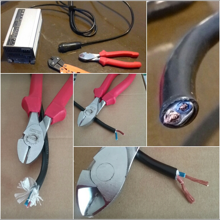 mit einem Seitenschneider die 48 Volt Leitung dort