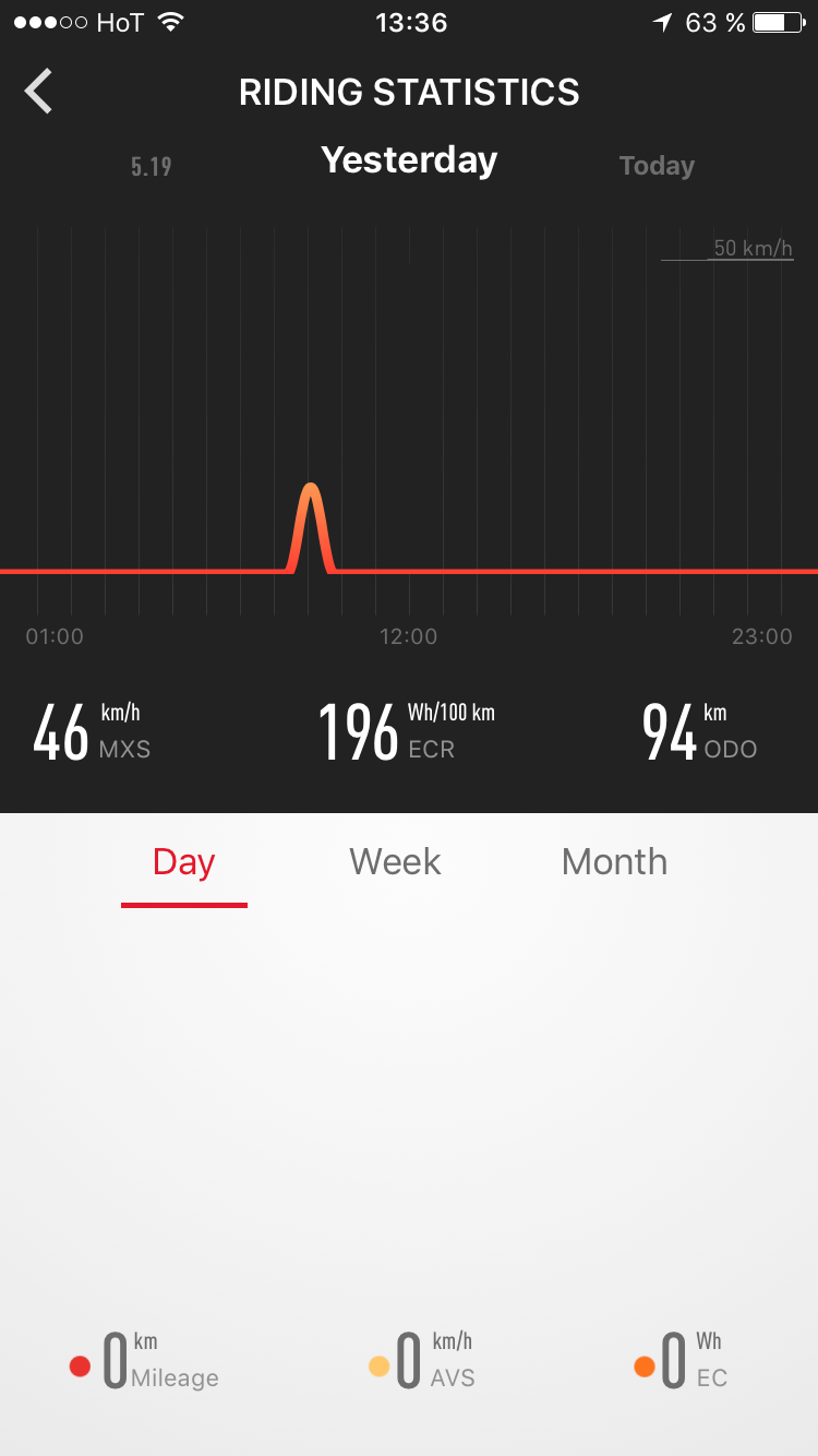 Bin neu hier im Forum und würde gern wissen ob irgendjeman schon mehr in der App im Batteriestatus oder in der Fahrstatistik angezeigt bekommt als nur einen geraden Strich? Hier sollte ja eigentlich der Prozentsatz über die Zeit über eine Kurve dargestellt werden. Weiters sehe ich egal wie oft ich den Scooter per Tag fahre immer nur eine Nadel und keine Daten unter Tag/Woche/Monat.