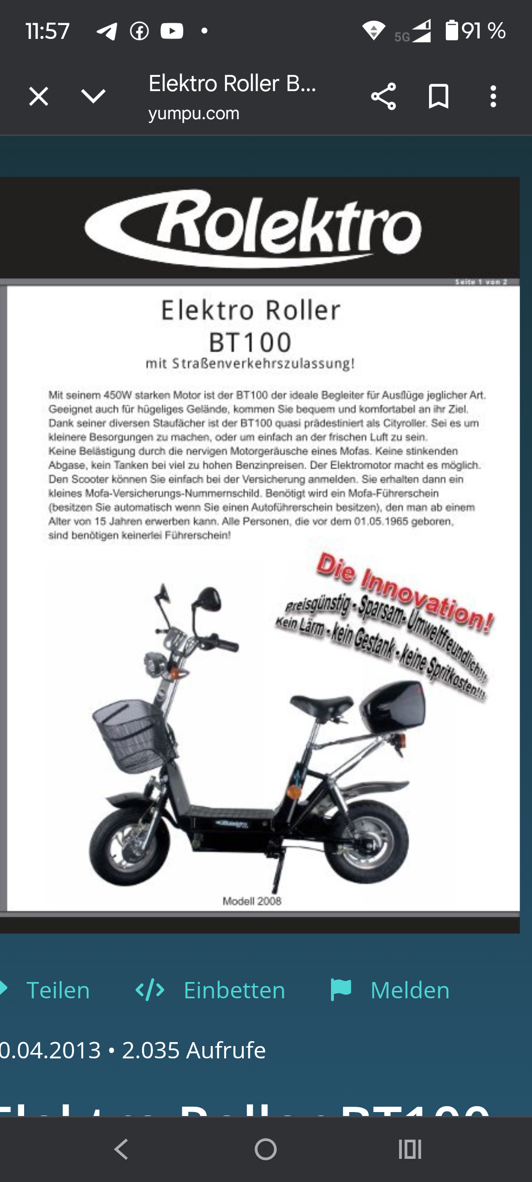 Elektro Roller BT100 - Dingden https://share.google/VSHv1jJ3QBua0S4Lr