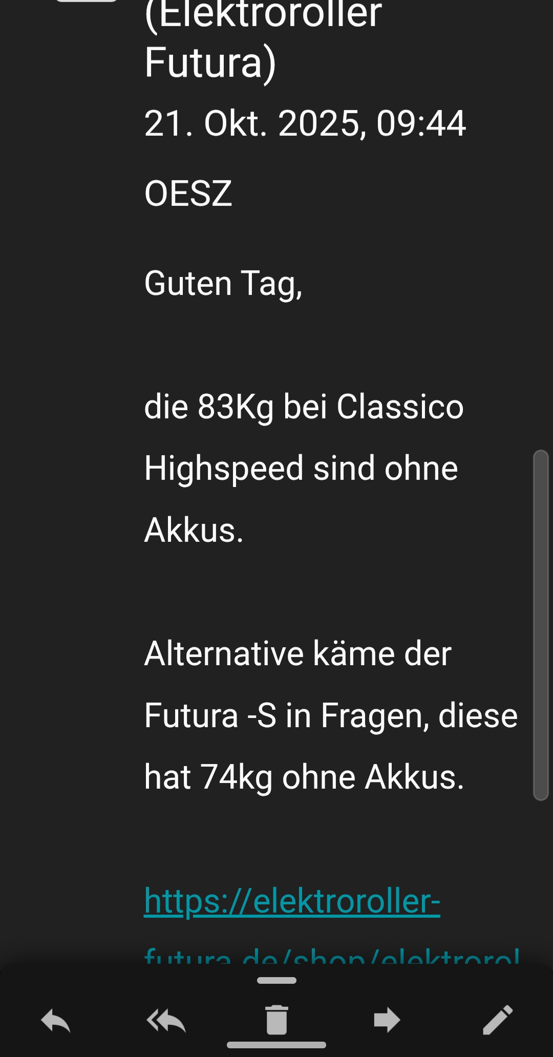 Re: Leichter E-Roller (max.75kg) Geschwindigkeit >70km/h