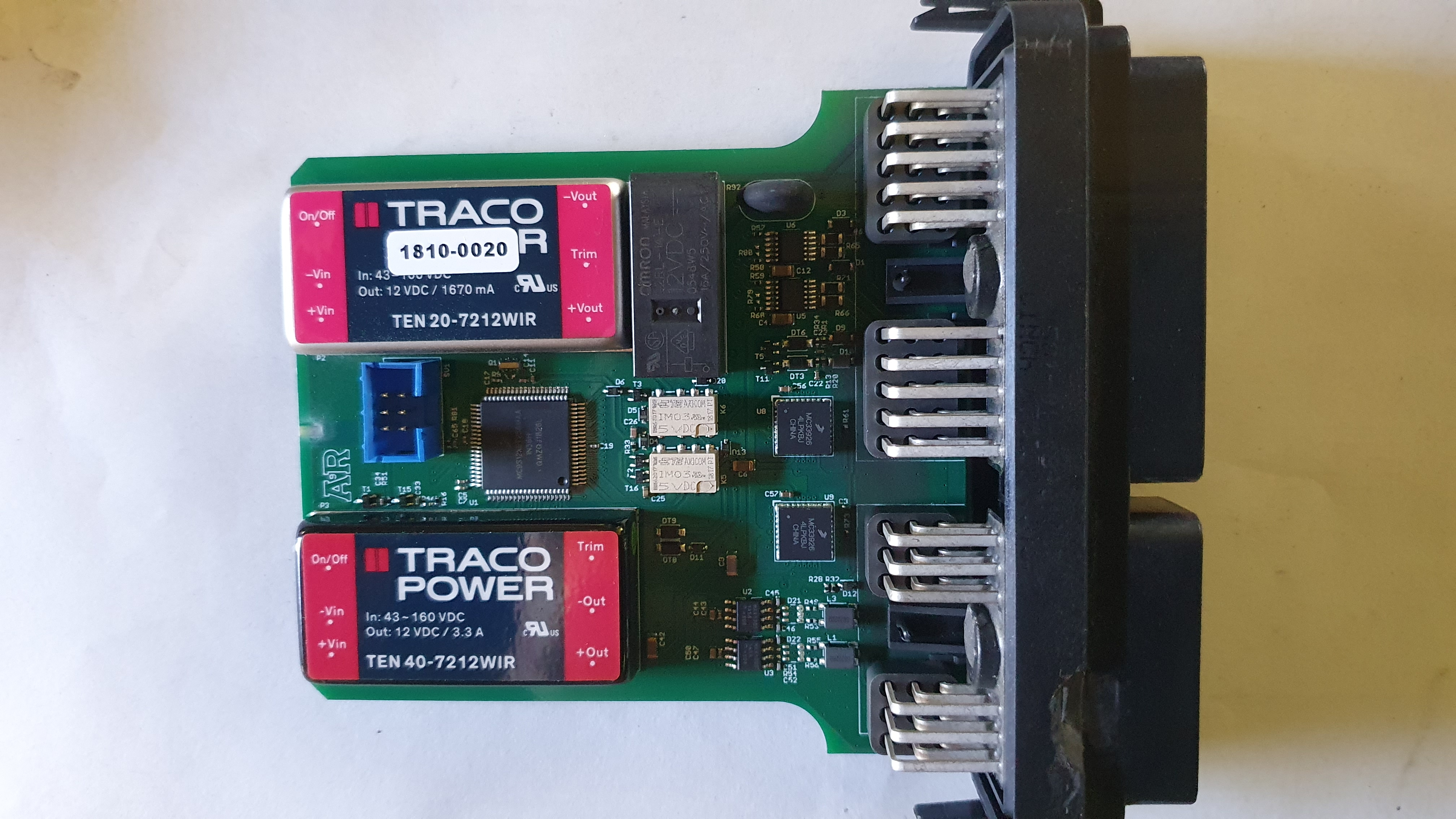 Auf dieser Platte befindet sich ein schwarzes Relais, welches für die Freigabe der 12V-Versorgungsspannung
