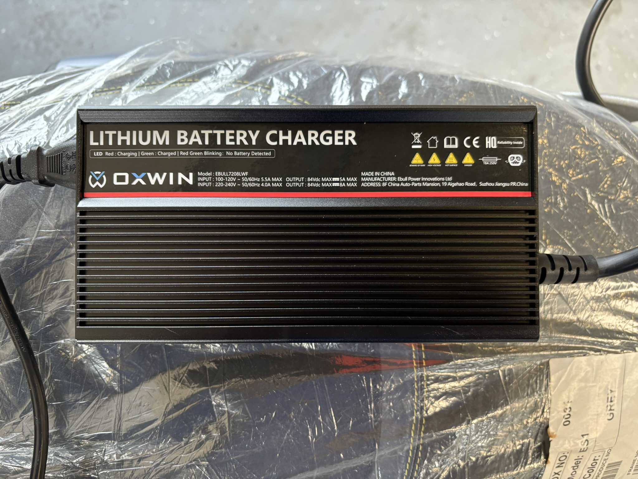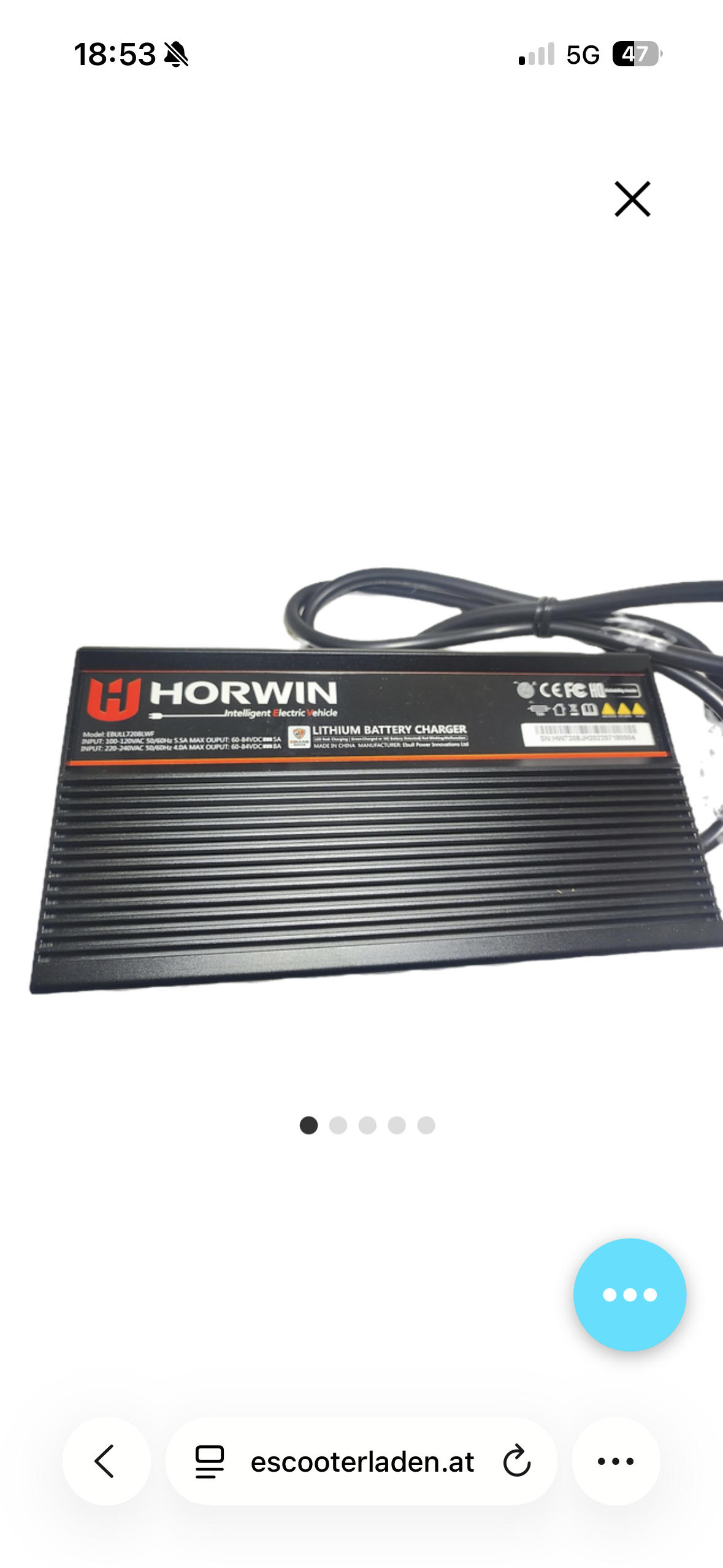Hier das Original Netzteilvon oxwin und das alternativ Netzteil von Horwin. Beide Netzteile haben die gleiche Modellnummer nur andere Stecker. Die mir nun vorliegenden Netzteil von Horwin gehen allerdings ebenfalls nur ein Plus und minus Kabel zum Stecker Somit sind die beiden Pins in der Lade Buchse unberührt. Demnach dürfte das BMS nicht angesprochen werden unter Lade Zufluss nicht gestartet. Aktuell habe ich es mit dem Horwin Netzteil noch nicht probiert, da ich noch auf eine entsprechende Buchse zu dem Stecker warte. Ergänzend kann ich noch sagen das Laden über den XT Stecker und im Ersatzgerät von noe fevo hat nicht geklappt.
